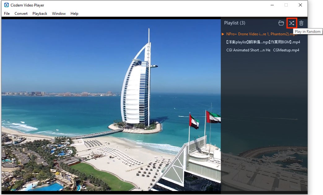 3. 動画はソフトにインポートされると、自動で再生します。順番再生、ループ再生、シャッフル再生、リピート再生の4つの再生モードが提供されています。
