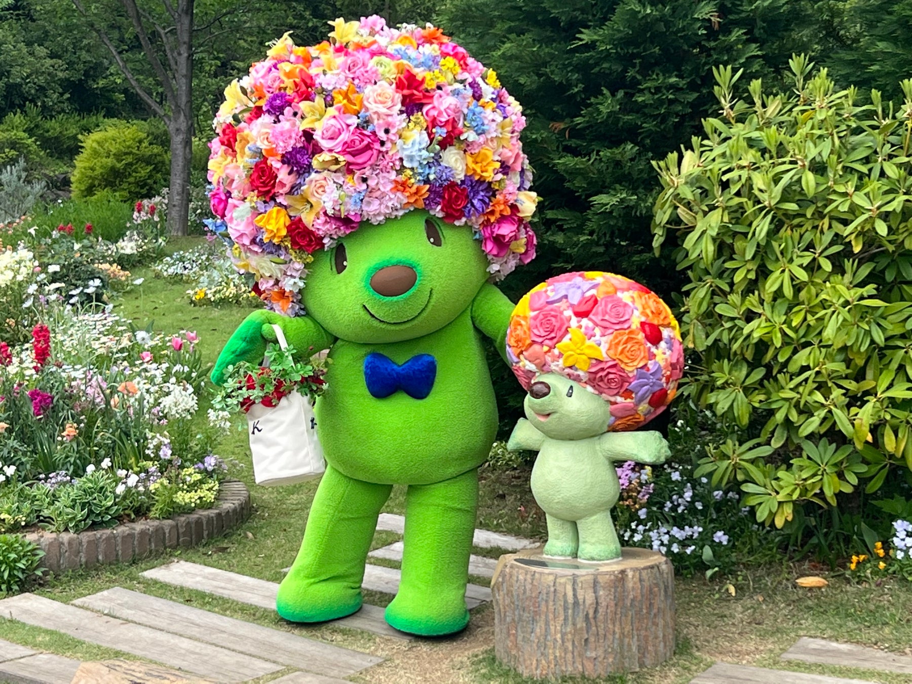 ③ ガーデンベアのグリーティング&花の配布
