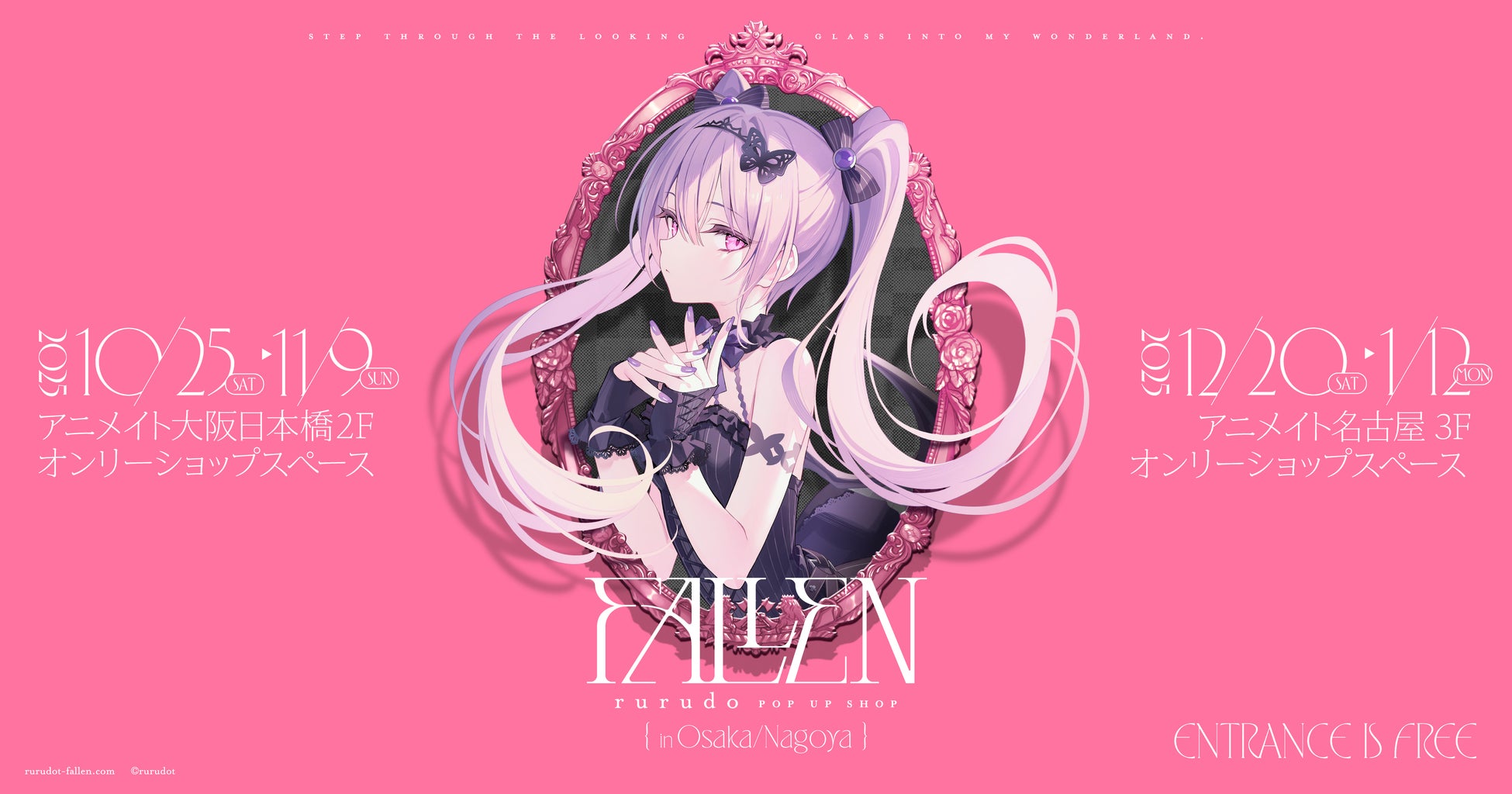 アンコロール株式会社(本社:東京都渋谷区、代表取締役:石井 真太朗)が手掛けるクリエイター特化型エージェンシー「INCOLORE(アンコロール)」は、アンコロール株式会社がマネジメントサポートを行うイラストレーターrurudo氏、株式会社ムービック(本社:東京都豊島区、代表取締役:髙橋 竜)と共催で、2025年10月25日(土)よりアニメイト大阪日本橋にて“FALLEN”(フォールン) rurudo POP UP SHOP大阪巡回を開催中です。さらに名古屋巡回も決定し、2025年12月20日(土)からアニメイト名古屋にて開催します。