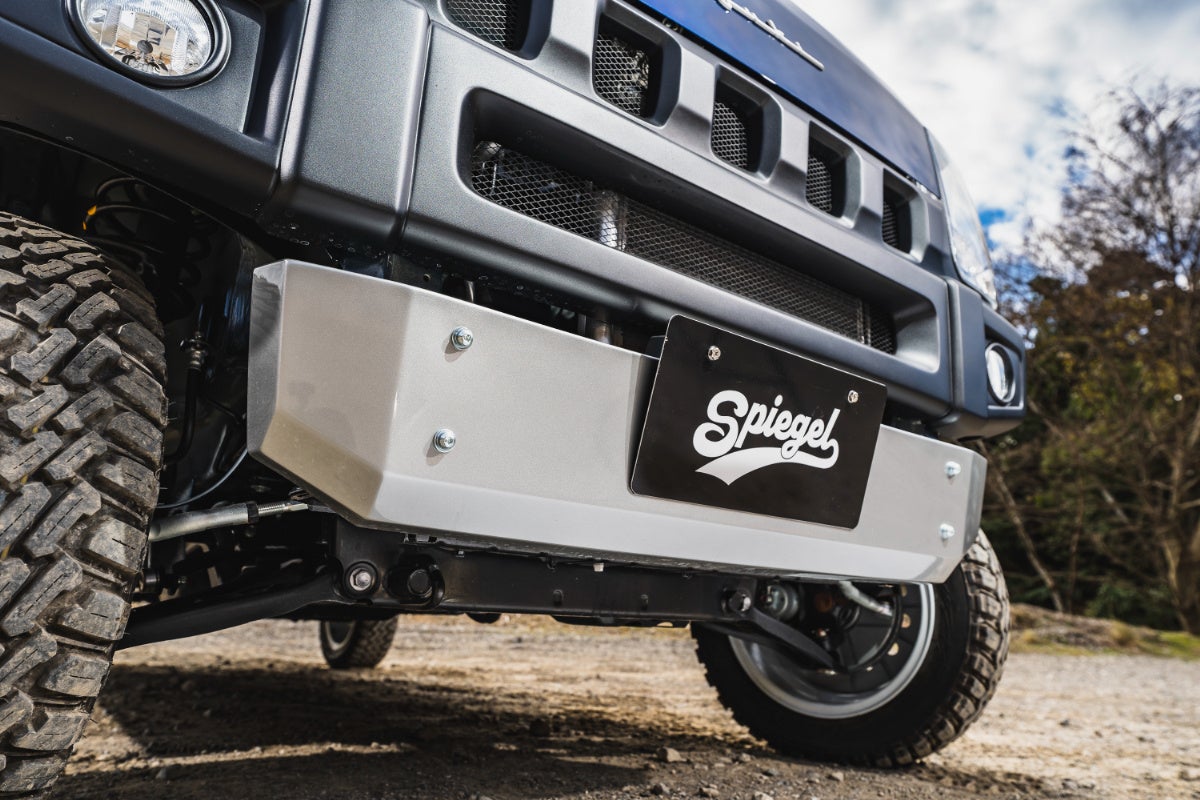スキッドプレートでスタイリッシュに:ジムニーのフロントフェイスを思わせるフロントバンパーは、スキッドスタイル、バンパーガードスタイルともに共通。ジムニーでもスキッドプレートをつけるように、エブニイでもスキッドプレートを装着。車体下部を保護しながらタフでスタイリッシュな印象を与えます。エブリイのボディにぴったり調和し、日常使いからアウトドアまで幅広く活躍します。
