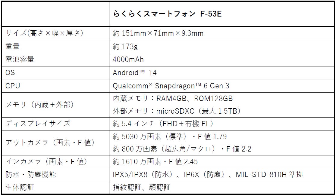 ・「らくらくスマートフォン F-53E」製品ページ:https://www.fcnt.com/product/rakuraku/f-53e/