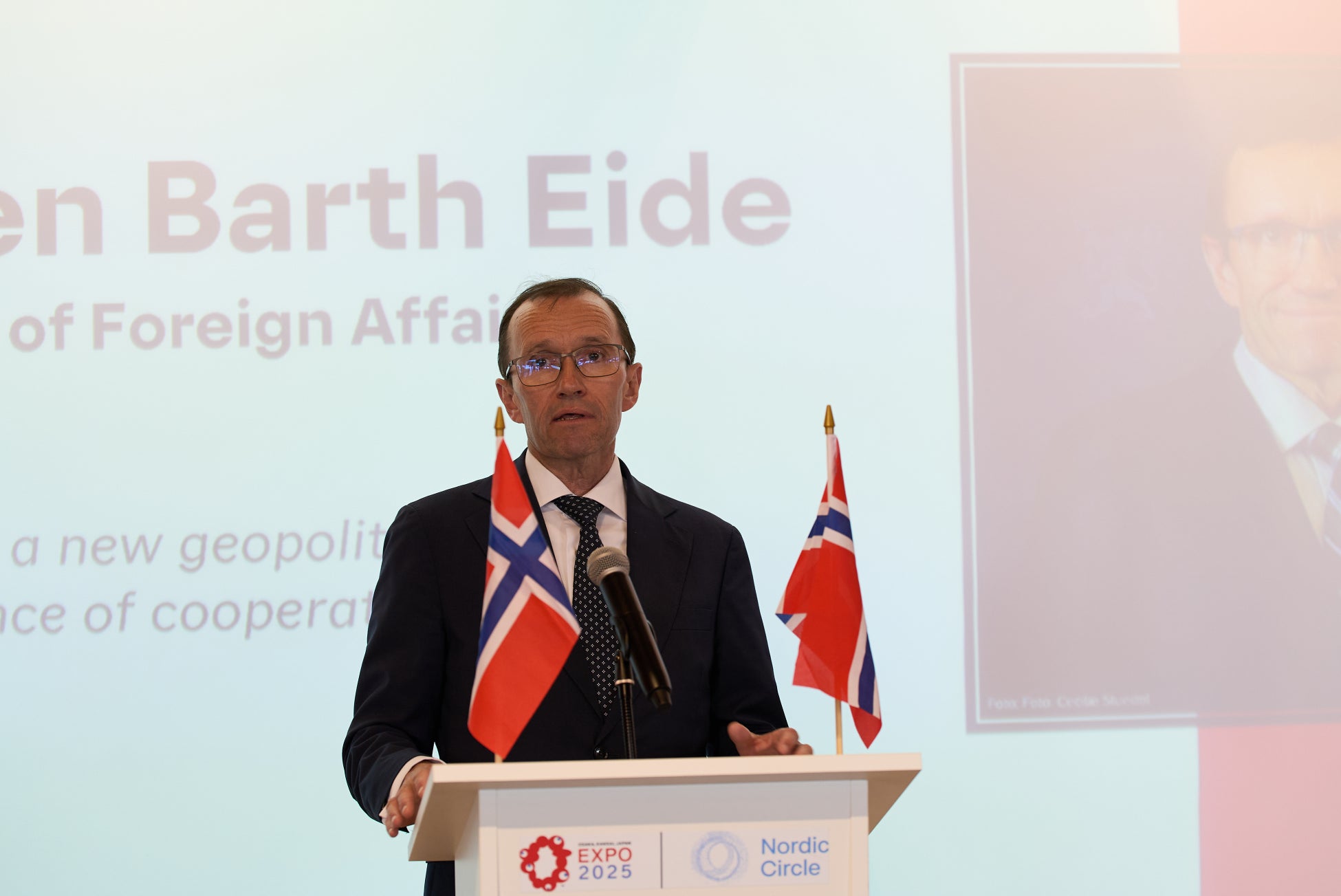 開会挨拶では、エスペン・バット・アイデ外務大臣が「日本とノルウェーは、戦略的パートナーシップを通じて強い信頼関係と協力を築いてきました。地理的には遠い国々ではありますが、精神的には非常に近いと考えています。また、大阪・関西万博は、大阪や関西地域との絆をさらに深める絶好の機会であり、地方自治体や関係団体、企業の皆様との連携を深めていけることを期待しております。」と語られました。