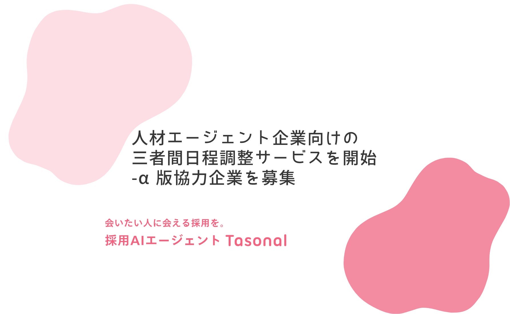 人材紹介エージェントが"往復メール"から解放される。企業×エージェント×候補者の三者間調整を再設計した「Tasonal for Agents 日程調整」α版提供