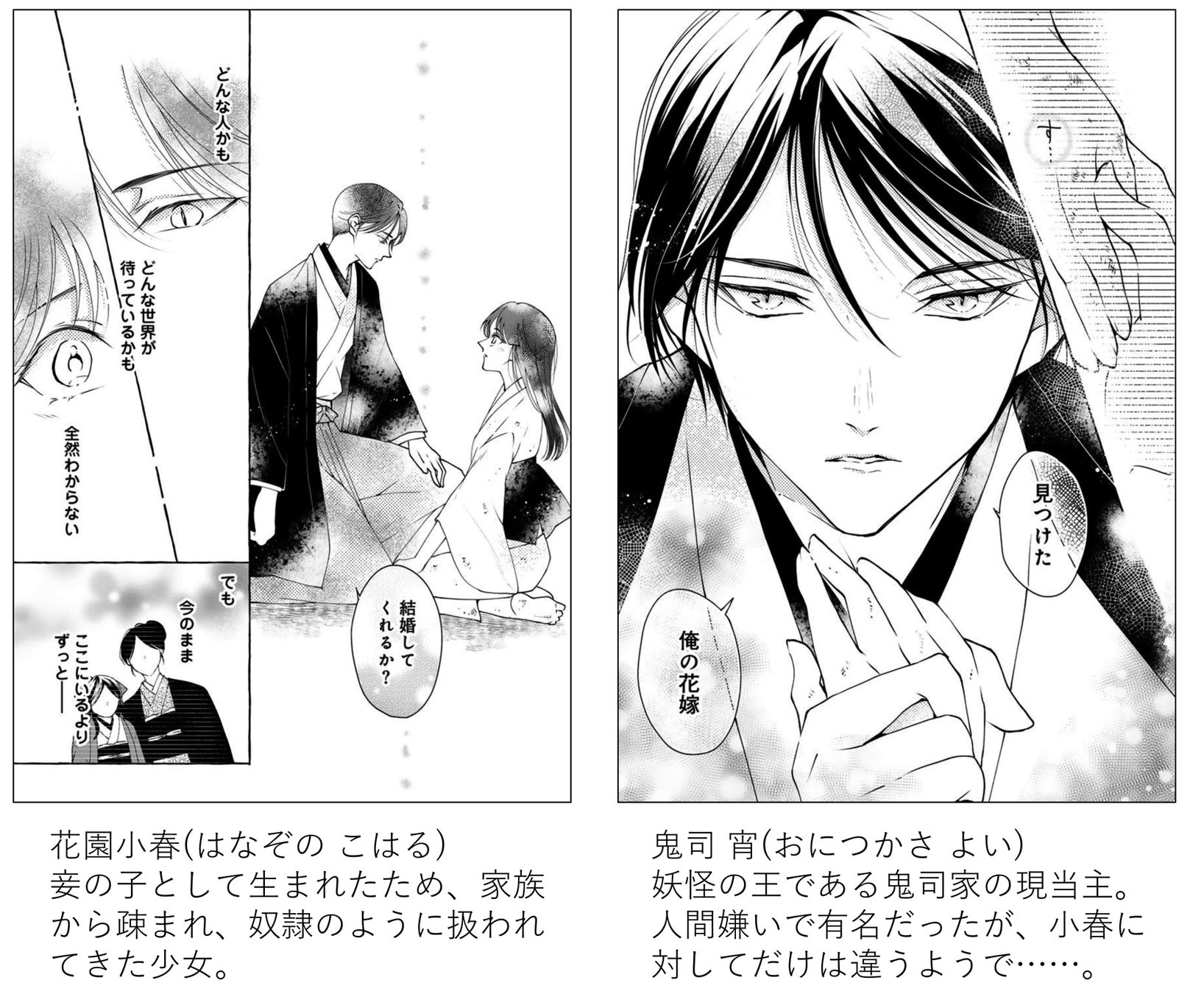 妾の子として、家族から虐げられ育ってきた小春(こはる)。しかし、妖怪を統べる帝、鬼司 宵(おにつかさ よい)に見初められ、彼の元に嫁ぐことに……。