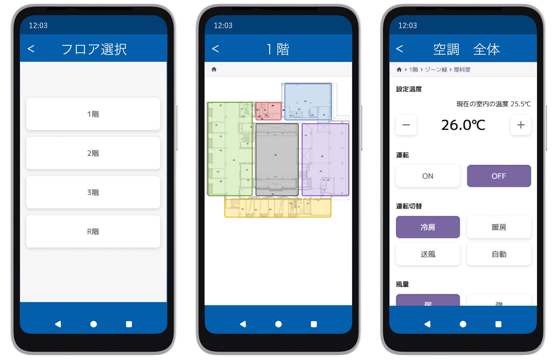 教職員はスマートフォンから空調・照明を遠隔操作可能。