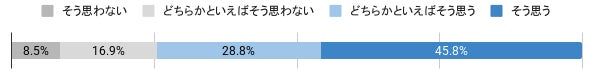 「(できていないと)思う」「どちらかといえばそう思う」が計74.6%。