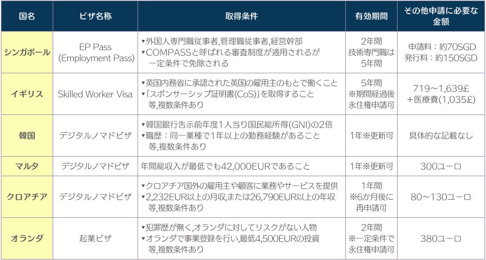 各国のビザや永住権に対するルールは、定期的に更新されております。こちらの情報とあわせて各国の大使館のHPなどをあわせてご確認ください。