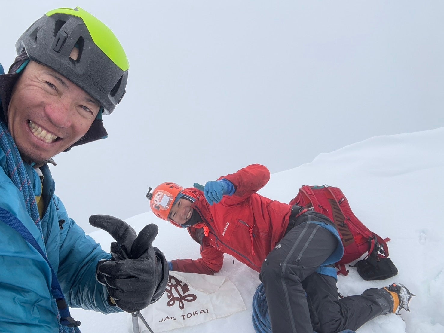 今シーズンは天気が極めてわるく、氷雪壁となるルートのコンディションもとても難しいものでしたが、7月26日16時20分ごろ(現地時間)、谷剛士(キャンモア在住)と草野駿希が登頂しました。