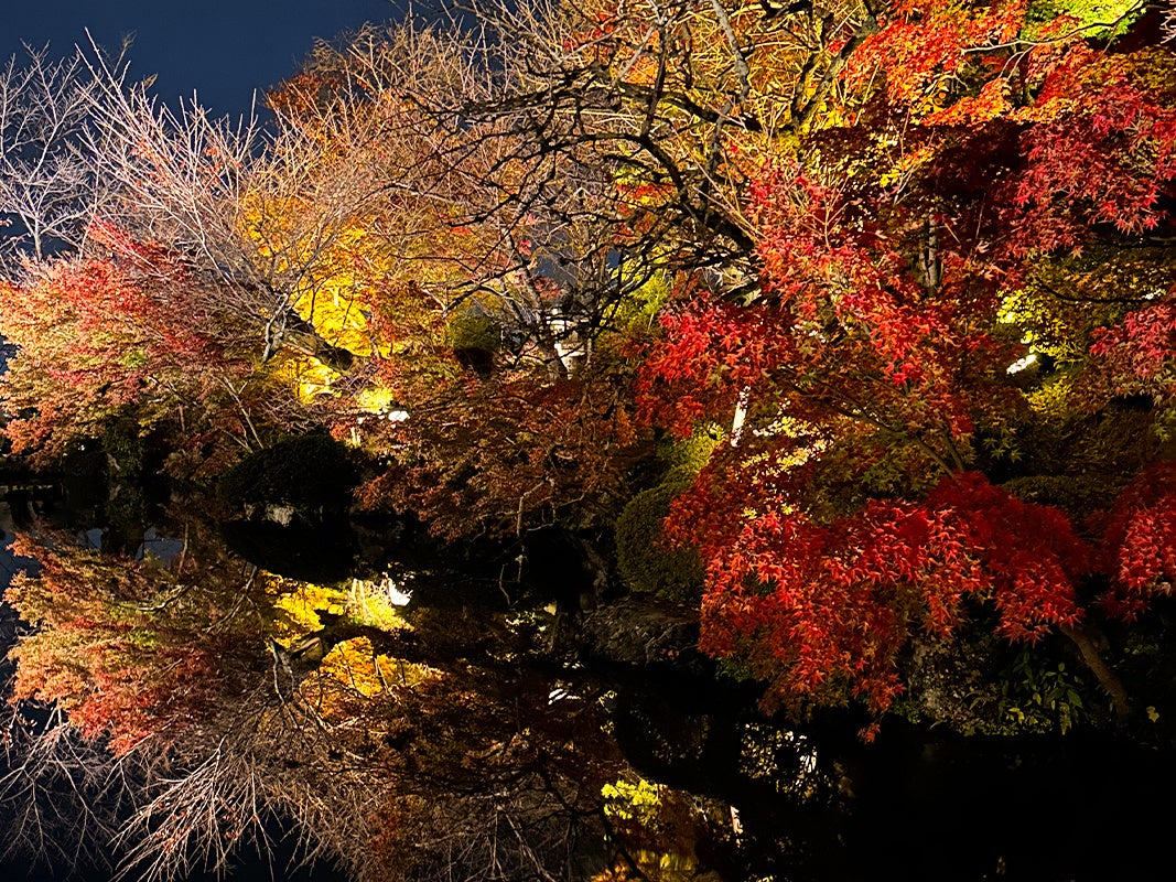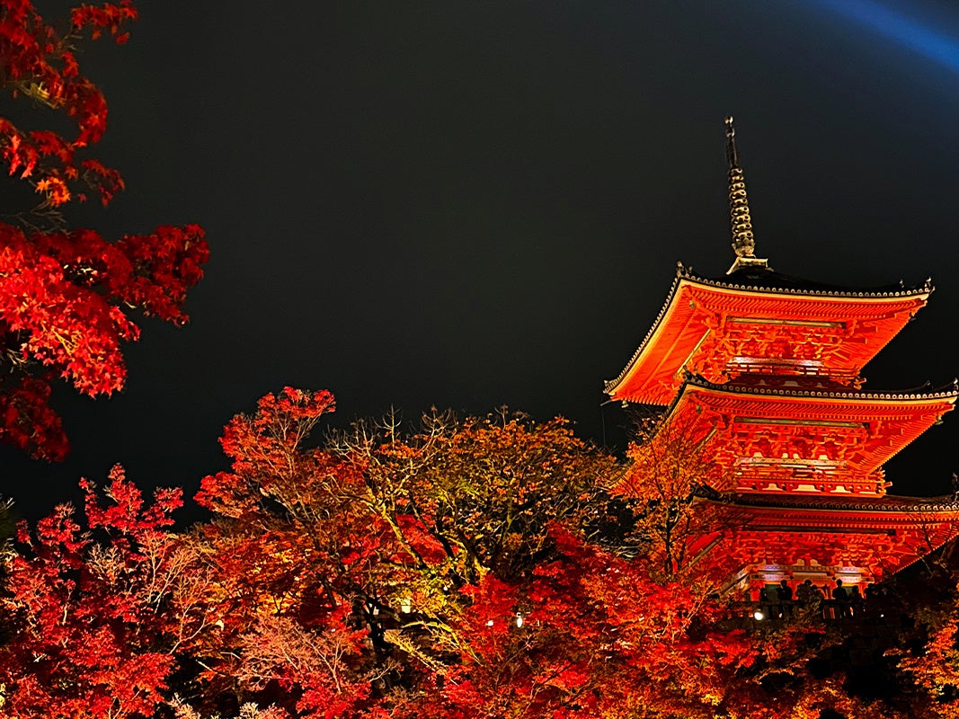 秋が深まる京都では、街全体が紅葉に染まり、夜のライトアップが幻想的な輝きを放ちます。