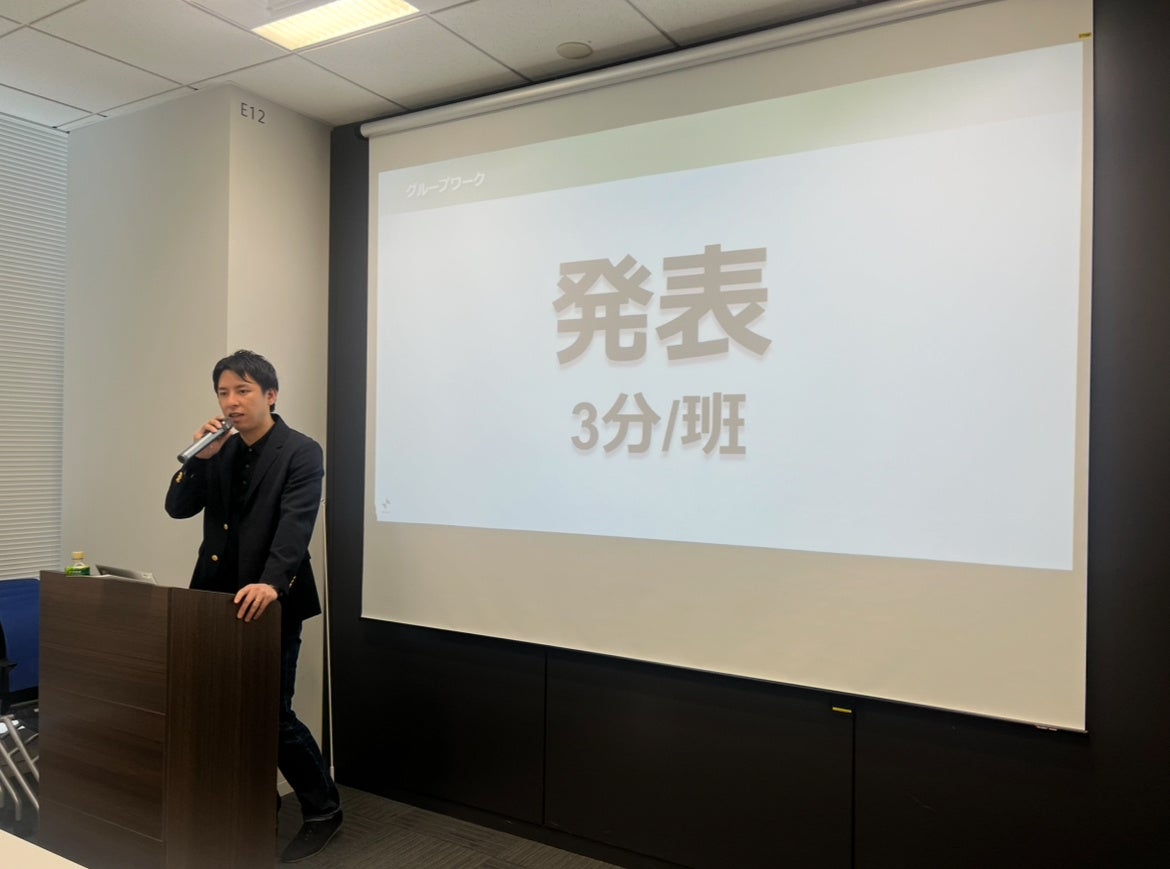 はじめに内定者研修では、入社後配属予定先である、店舗営業部の部長 岡根壮太より内定者の皆様へ、「お客様が弊社をお選びいただく理由として、弊社が提供する質の高い接客が挙げられます。ここにいる皆様には、ぜひ入社後研修にてお客様に安心していただける質の高い接客を身につけて活躍していただきたいです。」というメッセージがありました。部長陣一人一人から各部説明に加えて、MVVや想パの説明の後、グループワークと辞令交付が行われました。
