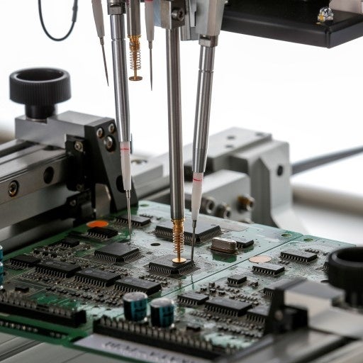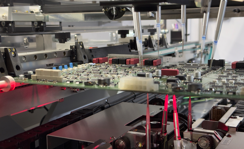電子機器の制御に必要な電子回路基板は、多くの分野で重要な部品です。『フライングプローブテスタ』は、基板の製造過程で発生する様々な不良を迅速かつ確実に検出する検査機であり、1987年にタカヤが開発・販売を開始しました。現在も業界トップクラスのシェアを誇り、実装基板検査機業界におけるリーディングカンパニーとして確固たる地位を築いています。