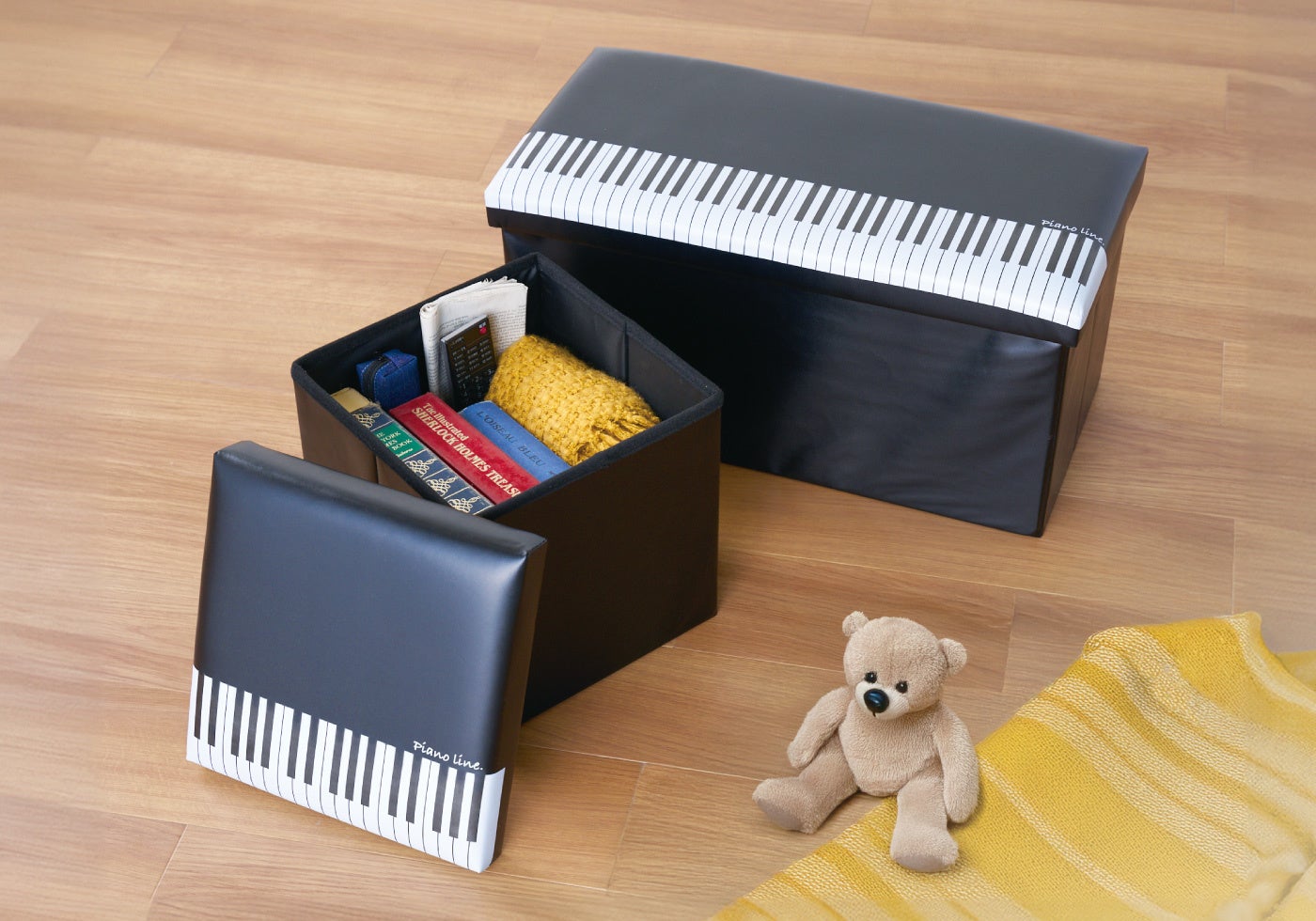 【生活空間に音楽デザインを】ピアノ発表会記念品専門店がリビンググッズを新発売!収納もできる3wayスツール