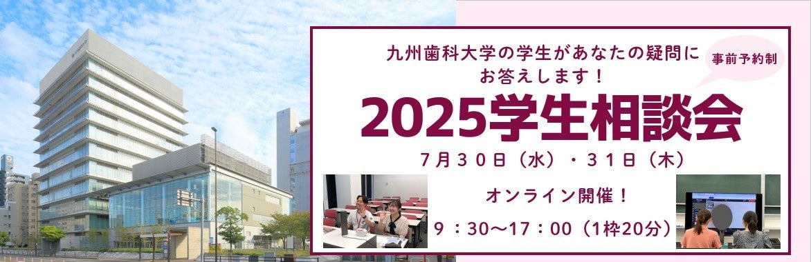 公立大学法人 九州歯科大学(キャンパス:福岡県北九州市、理事長・学長:粟野 秀慈)では、本学をより詳しく知って身近に感じてもらうことを目的として開催している「WEBオープンキャンパス」のプログラムの1つとして、高校生・受験生を対象とした「2025学生相談会」を2025年7月30日・31日の2日間、オンラインにて開催します!