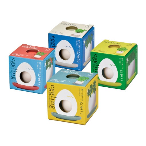 発売以来100万個以上販売した、たまご型の栽培キット「eggling」の受け皿付きセットが新登場。カラフルな受け皿を組み合わせ、ギフトとして喜ばれるラインアップが加わりました。