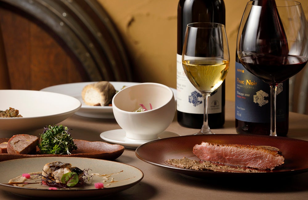 ◆京丹波の春野菜と京鴨のディナーコースと醸造家と楽しむワインのアッサンブラージュ(ブレンド)体験~ワイナリー秘話を聞きながら~