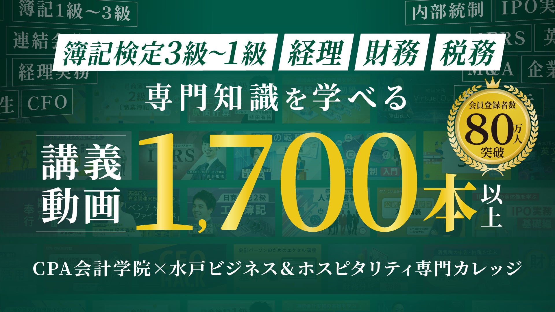 CPAラーニングは、簿記や経理実務を完全無料で学べる日本最大級の会計学習プラットフォームです。公認会計士試験合格者の66.7%を輩出している「CPA会計学院」の講師陣が登壇し、1,700本以上の講義動画とテキストを無償提供しています。累計登録者数は80万人を超え、資格取得から実務スキル向上、若手からベテランまで幅広いビジネスパーソンの学習を支援し、日本の会計ファイナンスリテラシー向上に貢献しています。