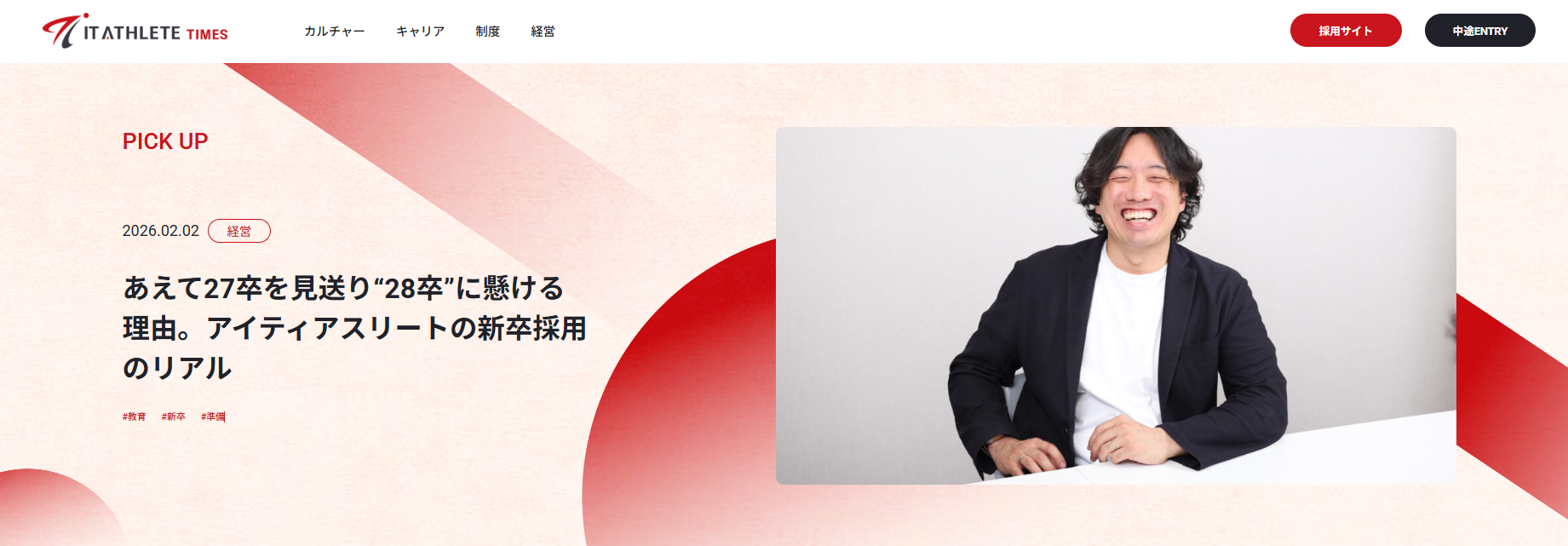 アイティアスリート株式会社(本社:東京都千代田区、以下「当社」)は、求職者・学生に向けたオウンドメディア「IT ATHLETE TIMES」を開設したことをお知らせいたします。本メディアでは、エンジニアのキャリアや採用・組織文化に関する情報を発信してまいります。
