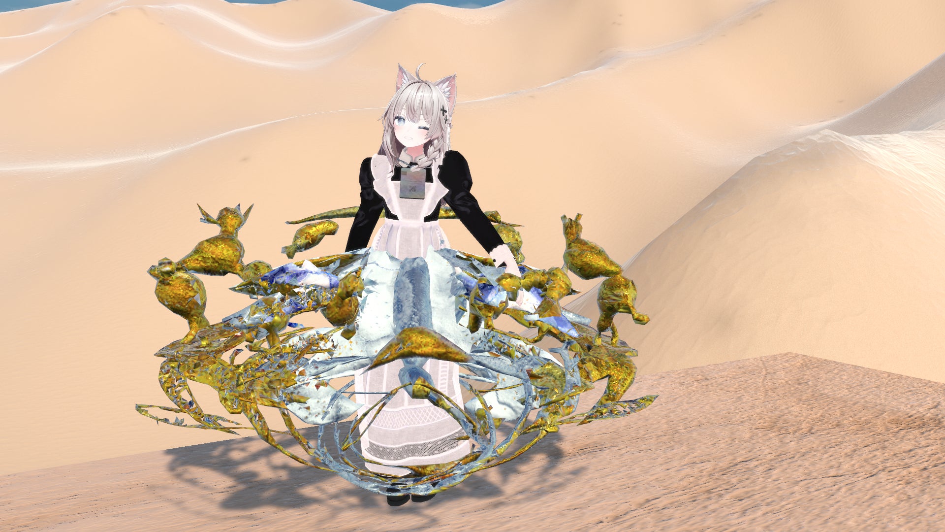 VRChatの中で、このクチュールをまとうあなたが、 「見せたい自分」も「隠したい自分」も、両方引き連れて歩けますように。 もしかしたら、すれ違う誰かが、あなたの影だけを好きになる日だって、来るかもしれないから。 それって、とっても素敵なことじゃない?