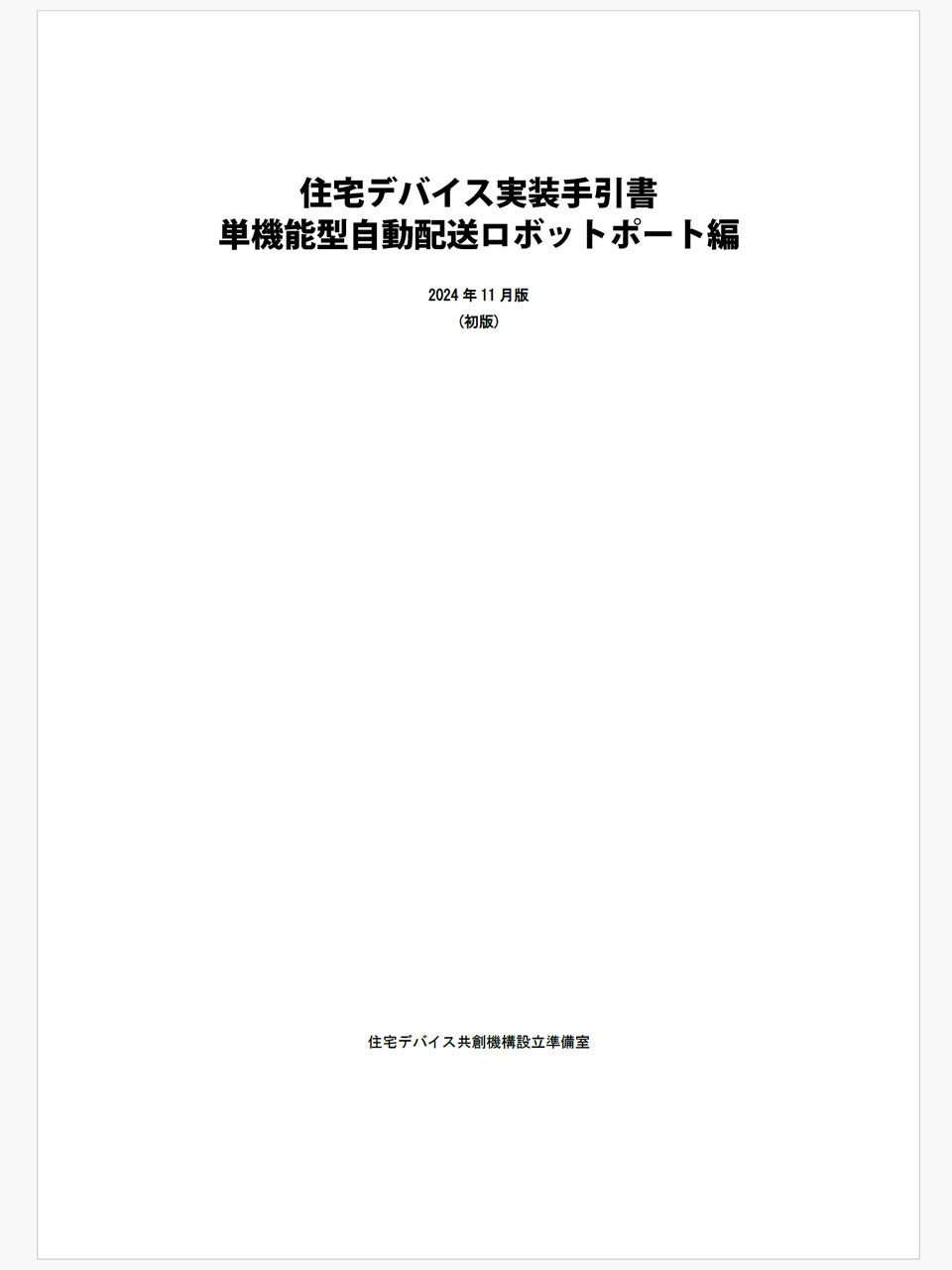 「住宅デバイス実装手引書 単機能型自動配送ロボットポート編 2024年11月版(初版)」のダウンロード