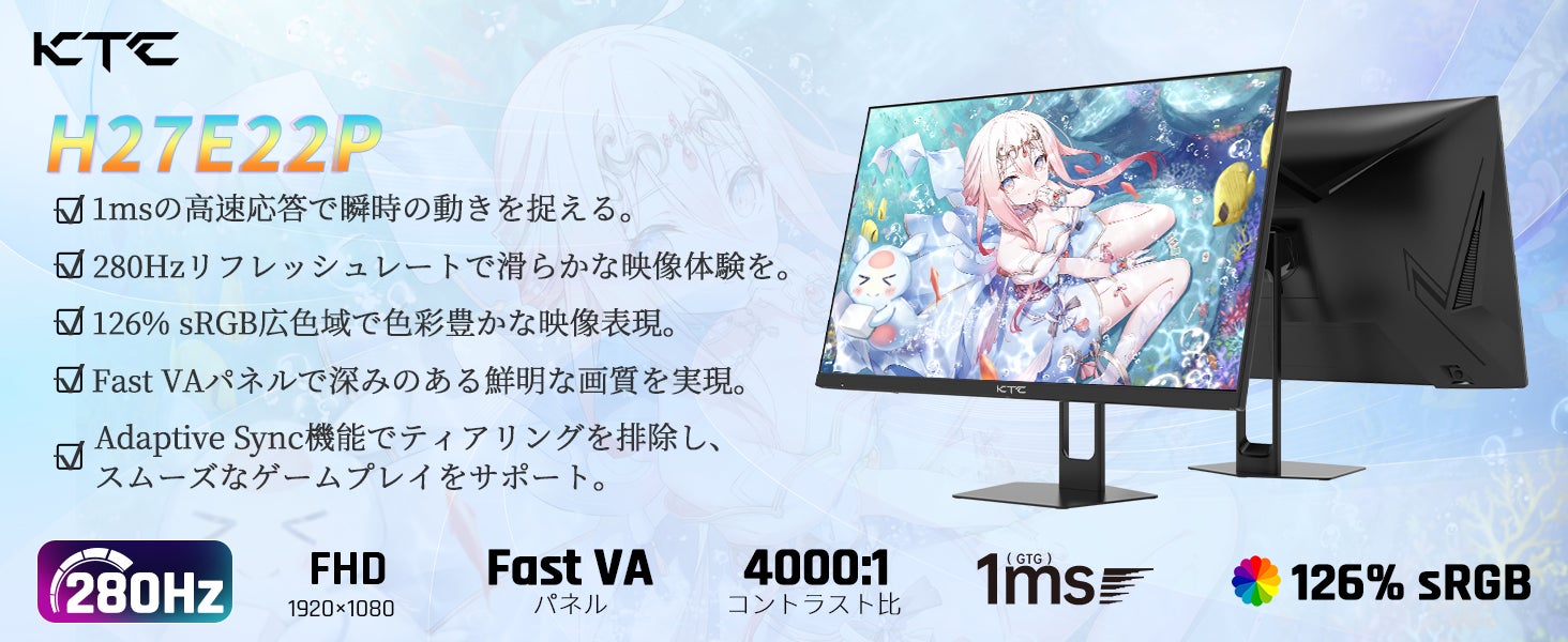 ゲームファンの皆さん、待望のニュースが舞い込んできました!KTCが自信を持ってお届けする新しい27インチゲーミングモニター「H27E22P」が登場し、あなたのゲーム体験をまったく新しい次元へと引き上げます。このモニターは、圧倒的な280Hzリフレッシュレートを誇り、まさにゲームの世界で勝利を収めるための武器と言えるでしょう。
