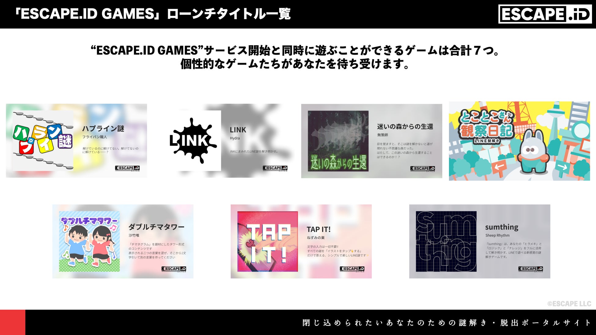 ESCAPE合同会社(所在地:東京都品川区、統括プロデューサー 佐々木 翼)の運営する謎解き・脱出ゲームに特化したチケットポータルサイト「ESCAPE.ID」は、2025年5月5日にオンライン謎(LINE謎・web謎)特化型ポータルサイトとして、「ESCAPE.ID GAMES」のβ版サービスを開始することをお知らせします。