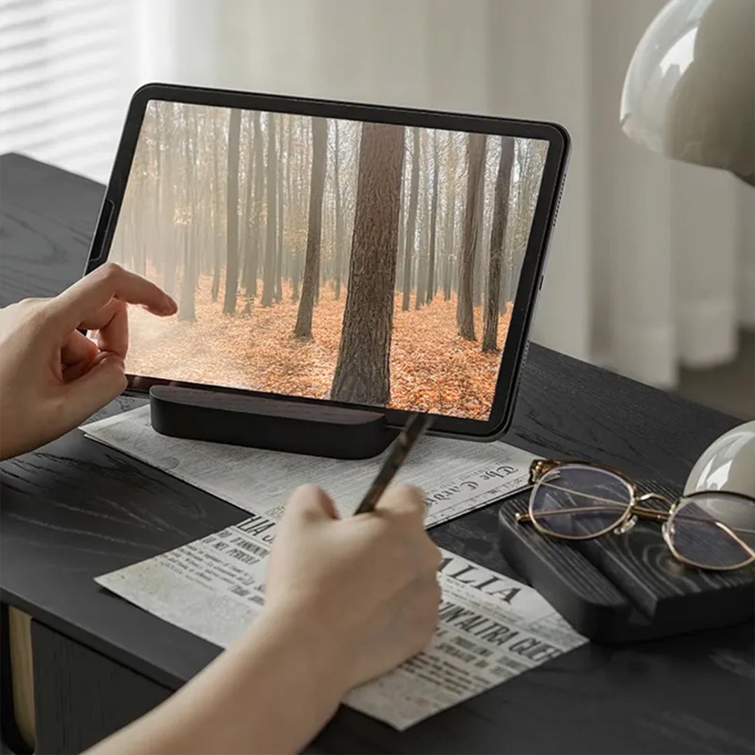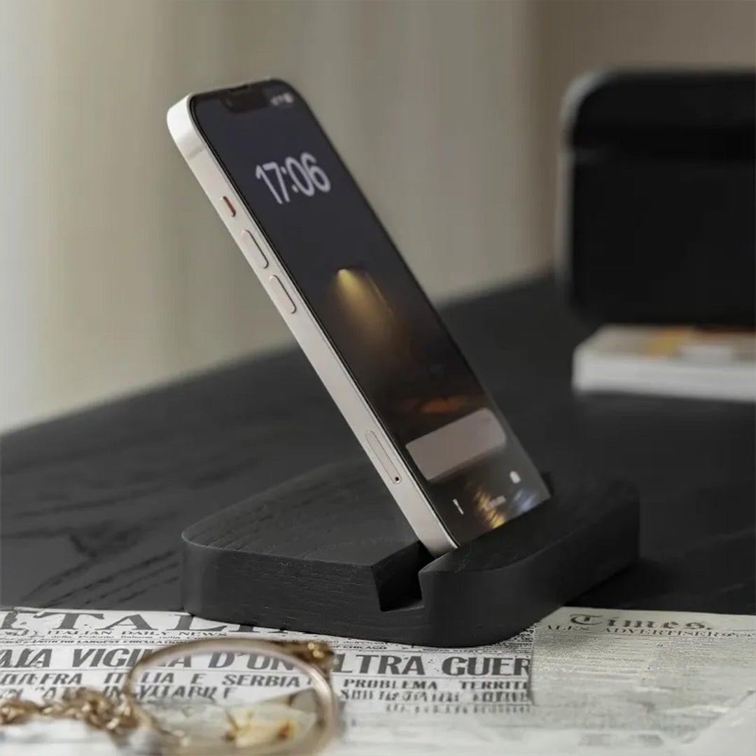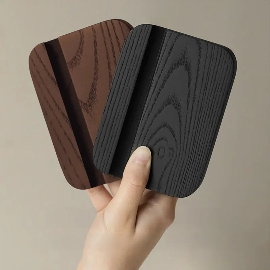Woody Auraシリーズでは、お試しとして木材サンプルをご購入いただけます。色味や質感を実際に手に取ってご確認いただけるだけでなく、スマホスタンドとしてもご活用いただける便利なアイテムです。ご自宅で触れることで、天然木の美しさと温かみをぜひご実感ください。
