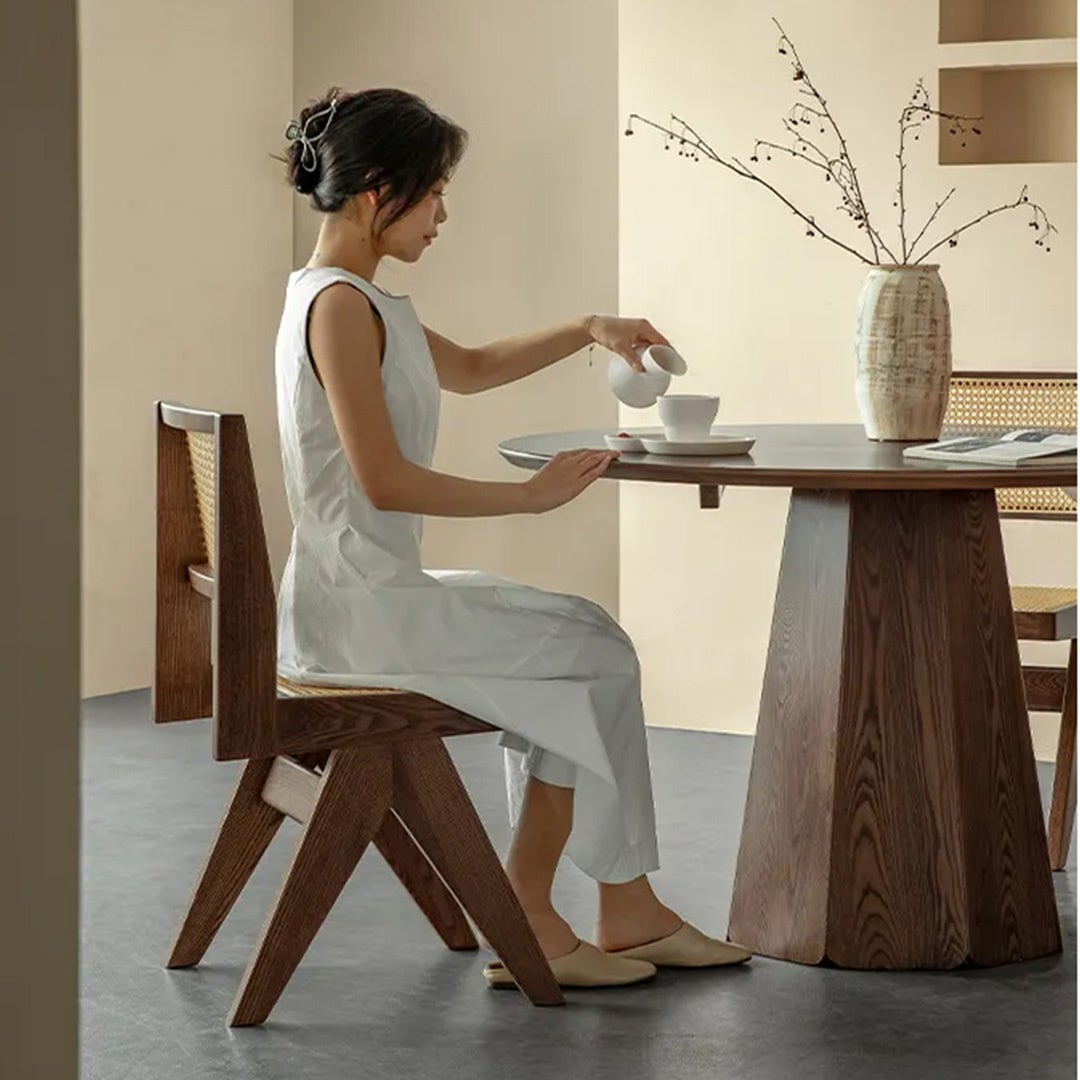 八角形の脚が特徴的な、洗練された印象のラウンドテーブル。ナチュラルな木目が際立つ天然木は温かみがあり、シンプルながらも存在感があります。角のない滑らかなデザインで安心してお使いいただけるため、小さなお子様がいるご家庭にも最適です。