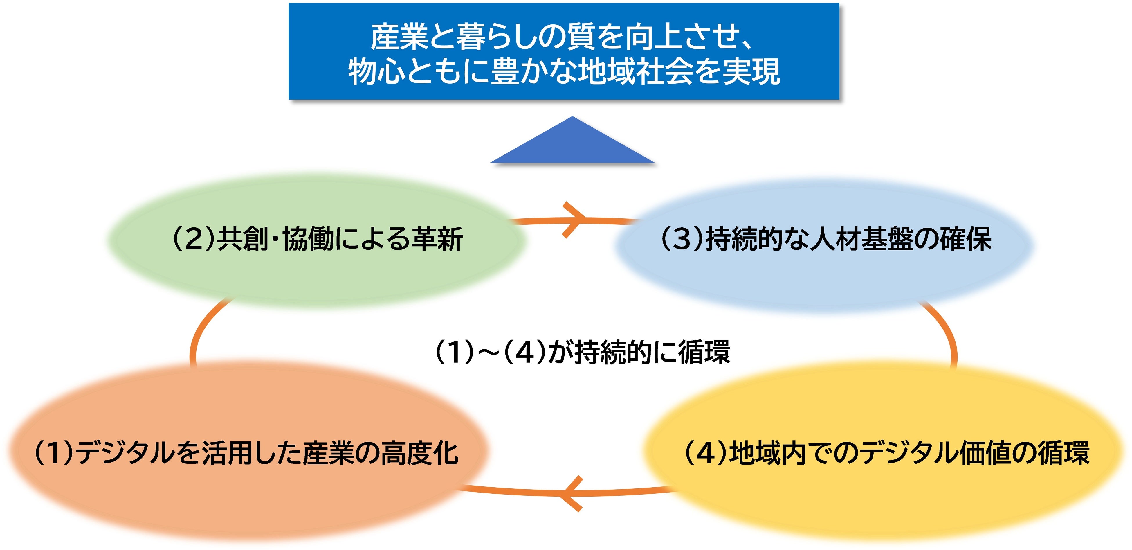 「産業と暮らしの質を向上させ、物心ともに豊かな地域社会を実現する」