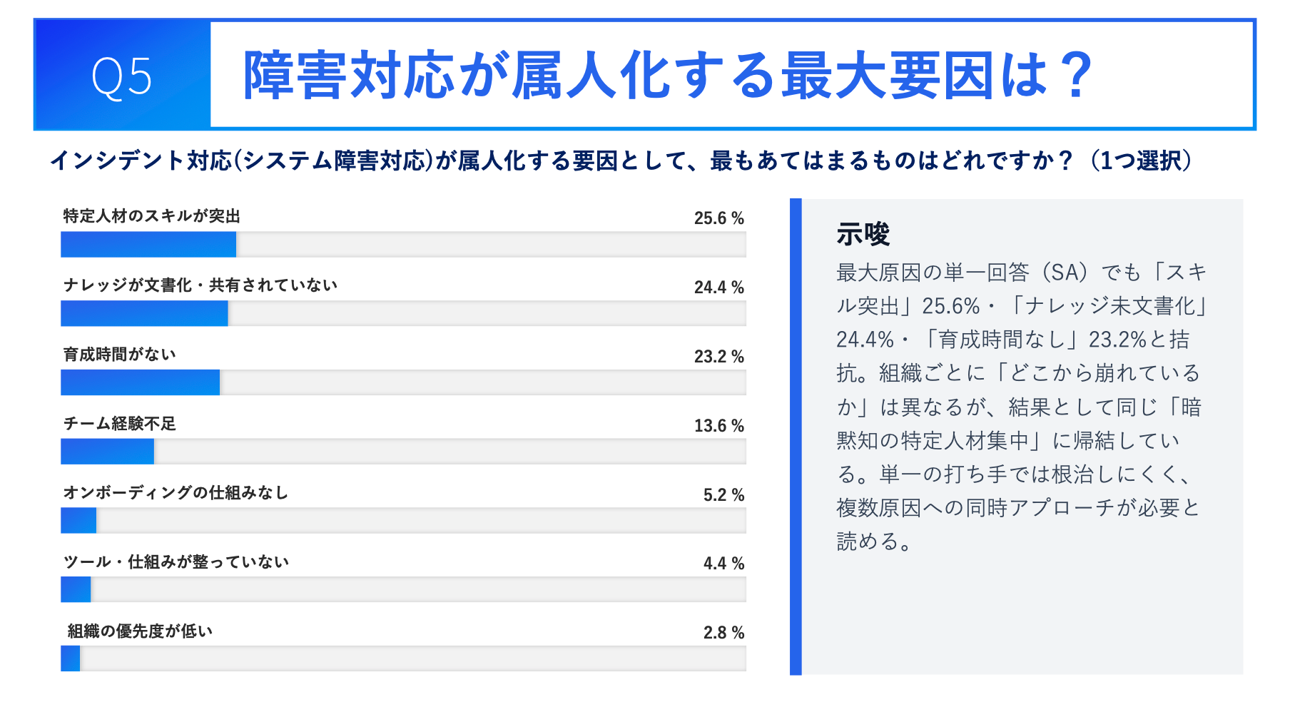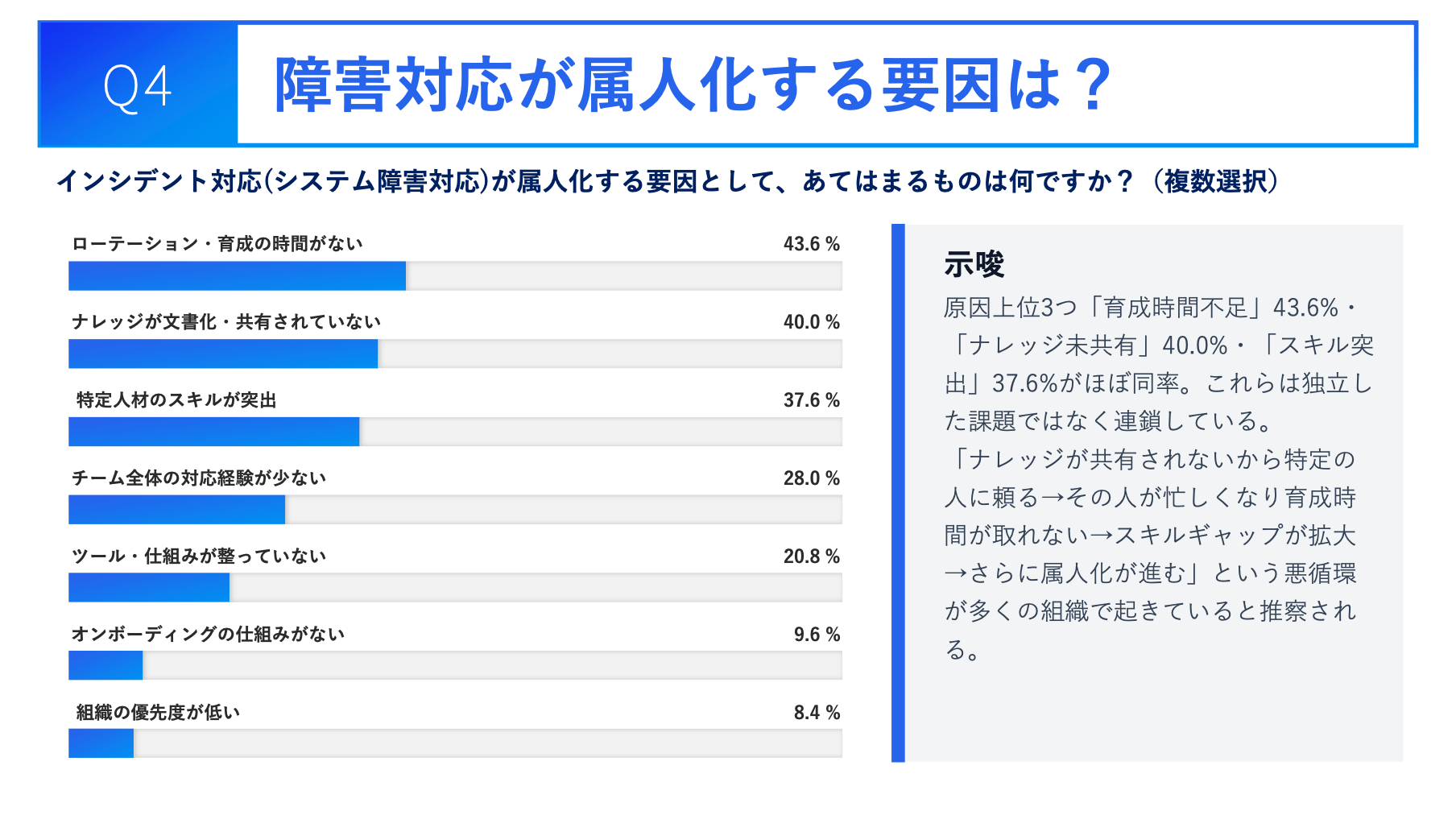 3. 原因は「時間不足」「ナレッジ非共有」「スキルギャップ」の三つ巴