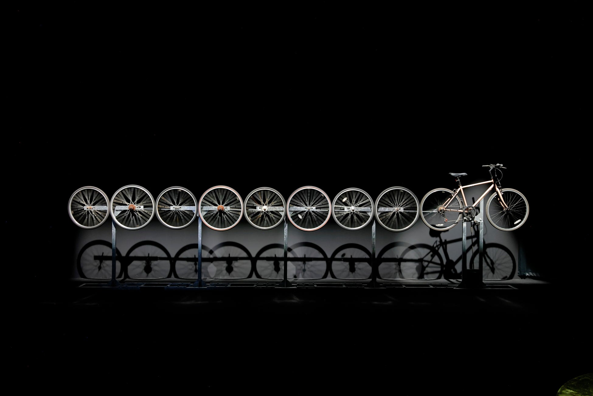 作家紹介:金属加工の技術によって、主に人がかかわることで動く立体作品を制作する。代表作は、2023年に韓国の国立アジア文化殿堂で展示された「無限車輪」など。近年はアジアを中心に海外グループ展にも参加。