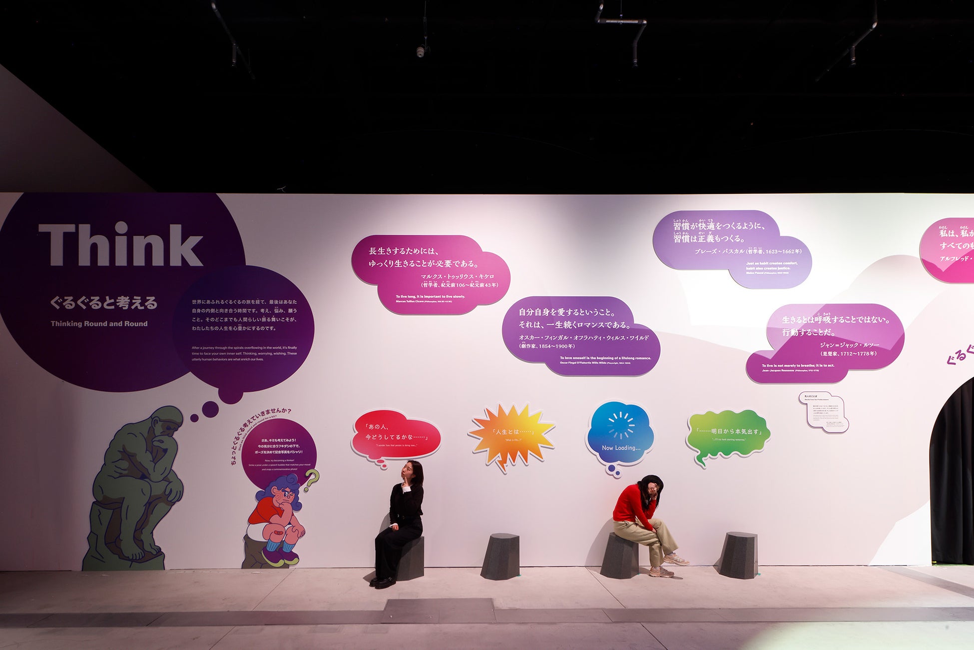 都市、文化、そして人の体や心。世界にあふれる「ぐるぐる」と出会う旅の最後。悩みや発見、喜びや悲しみを繰り返しながら、ぐるぐるの中にいる自分。考える人になったり、ぼーっとしたり、おみくじを引いてゆっくりと螺旋を描きながら、少しずつ前に上へと進んでいく生き方のヒントに出会います。