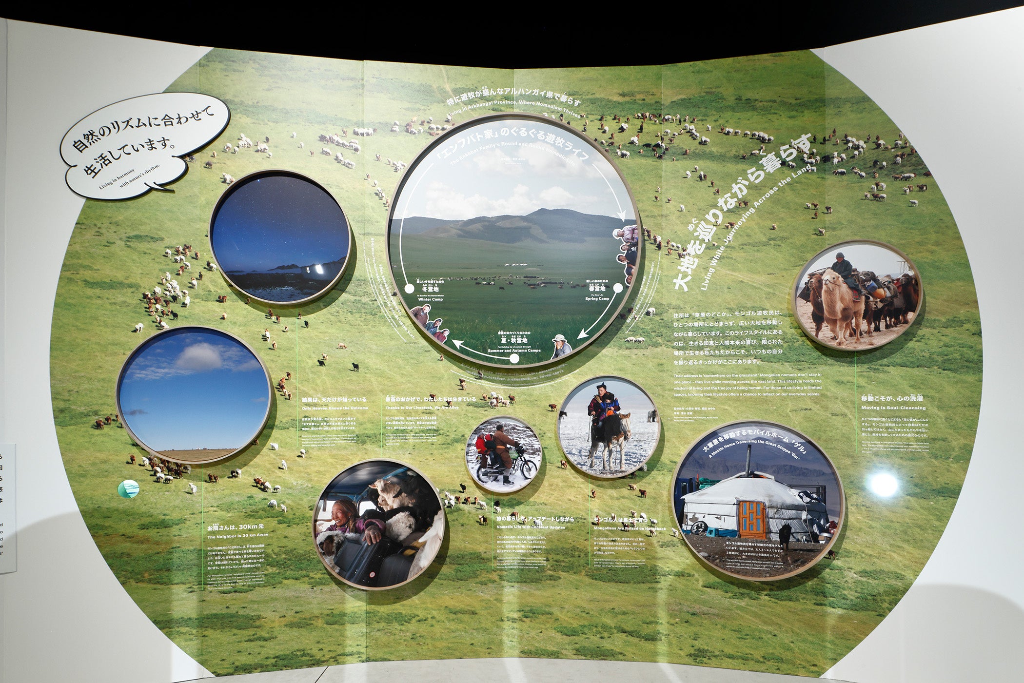 広い大地を移動しながら暮らすモンゴルの遊牧民。その“ぐるぐる”としたライフスタイルを、モンゴル研究の第一人者小長谷有紀ら監修協力のもと紹介する。