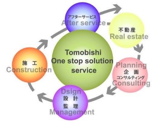 ㈱友菱様では土地物件の斡旋から、建物設計・施工、サイン製作・施工、アフターサービスまで煩雑で面倒なお客様の業務負担などをワンストップでご提案されております。