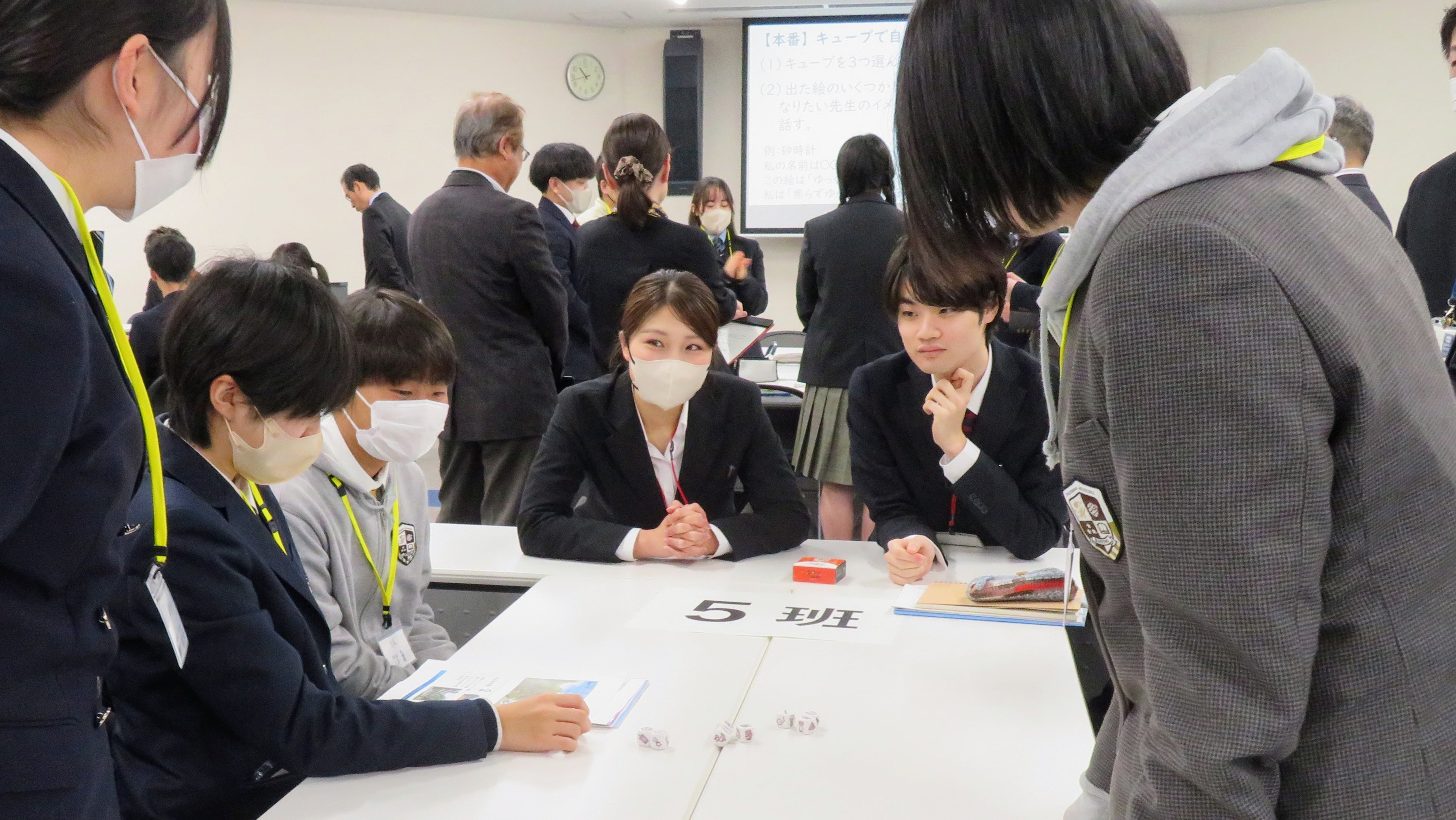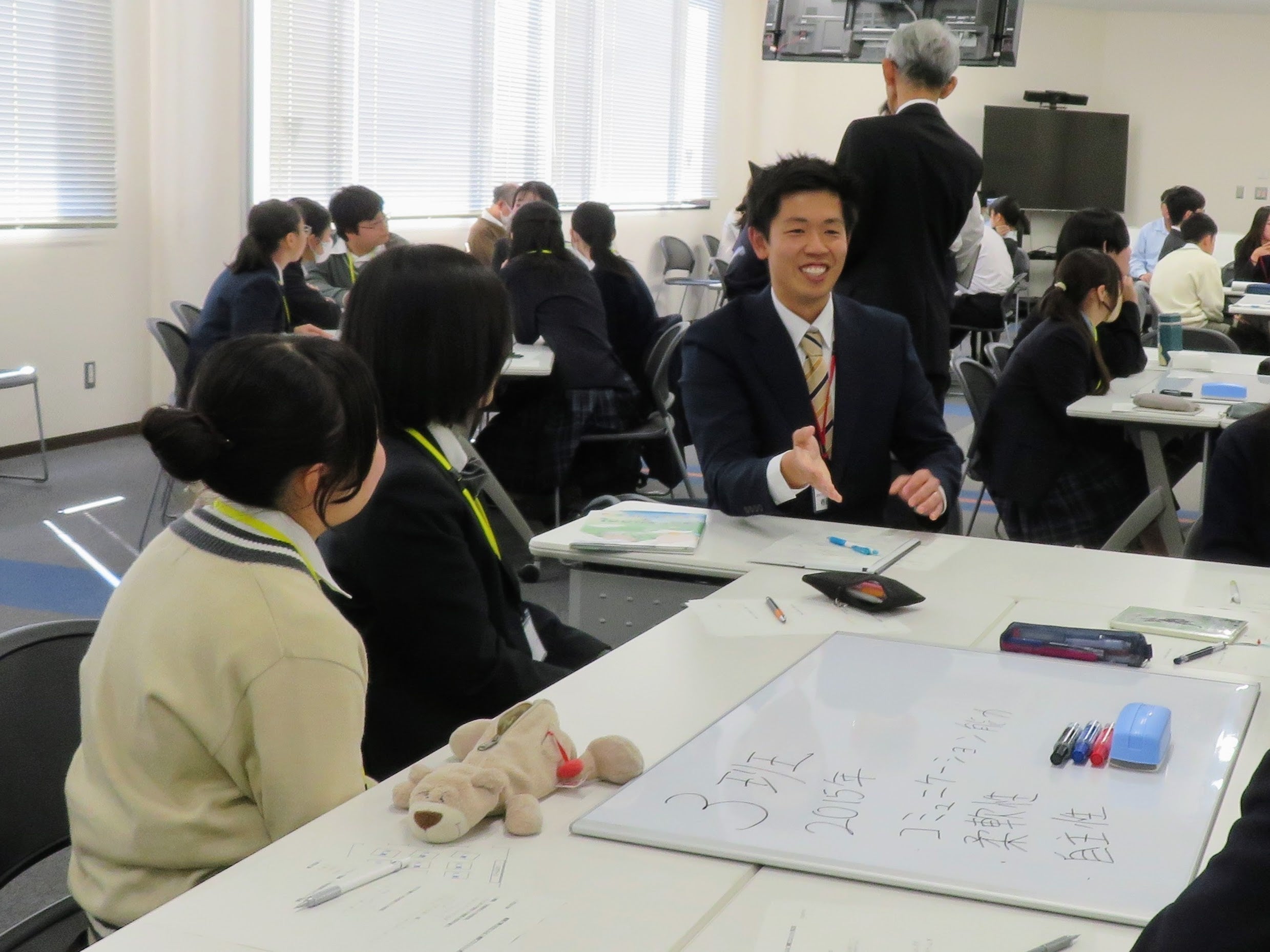 また、ホワイトボード・ミーティング®を活用したグループ討議を行い、高校生同士が「理想の教師像」について活発に意見を交わしました。