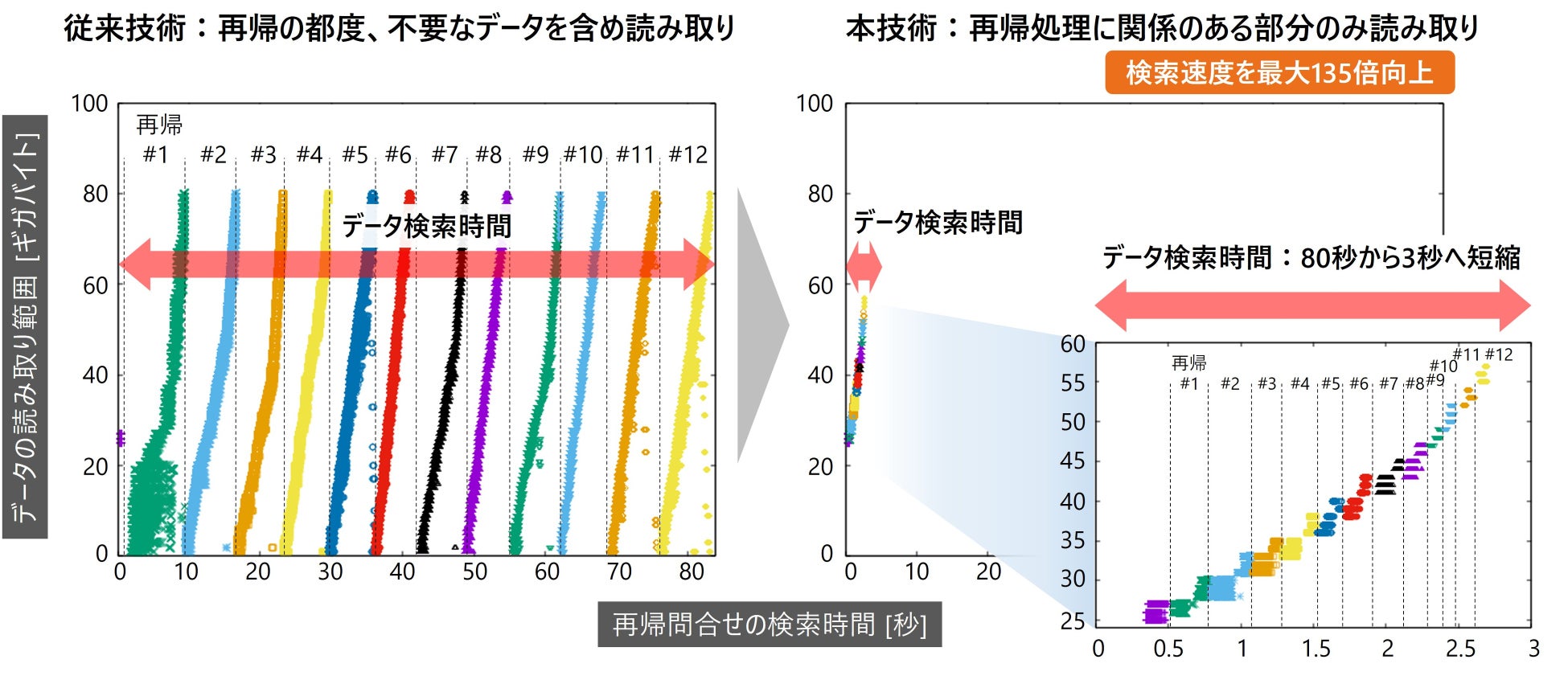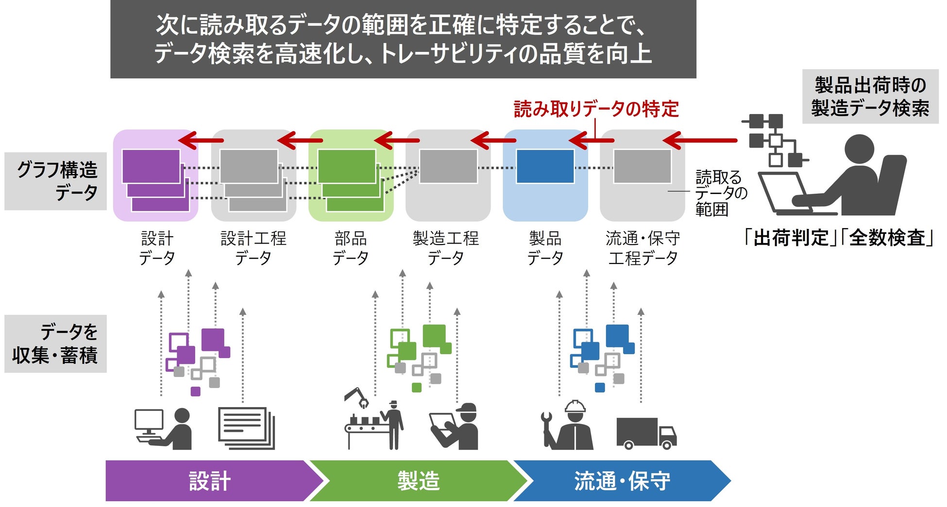 株式会社日立製作所(以下、日立)と国立大学法人東京大学(以下、東大)は、ビッグデータ分析の高速化に向けて、相互に複雑なつながりを持つデータ(以下、グラフ構造データ*1)の検索速度を大幅に向上する「動的プルーニング*2技術」を開発しました。従来、データベース内でデータ分析を行う際のグラフ構造データを順次たどる処理は、再帰問合せ処理*3と呼ばれる手続きで行われ、不要なデータを繰り返し読み取る必要があり、検索速度が低下するという課題がありました。本技術では、再帰問合せ処理中に得られる情報をもとに、次に読み取るデータの範囲をリアルタイムかつ正確に特定することによって不要なデータ読み取りを削減し、検索速度を大幅に向上させます。今回、製造業の製品出荷判定を対象にした検証では、データ検索速度を従来比で最大135倍*4向上できることを確認しました。これにより、製品の設計から製造、流通、保守までの工程や部品の追跡などのグラフ構造データの分析業務を迅速化し、トレーサビリティ*5の品質向上に貢献します(図1)。