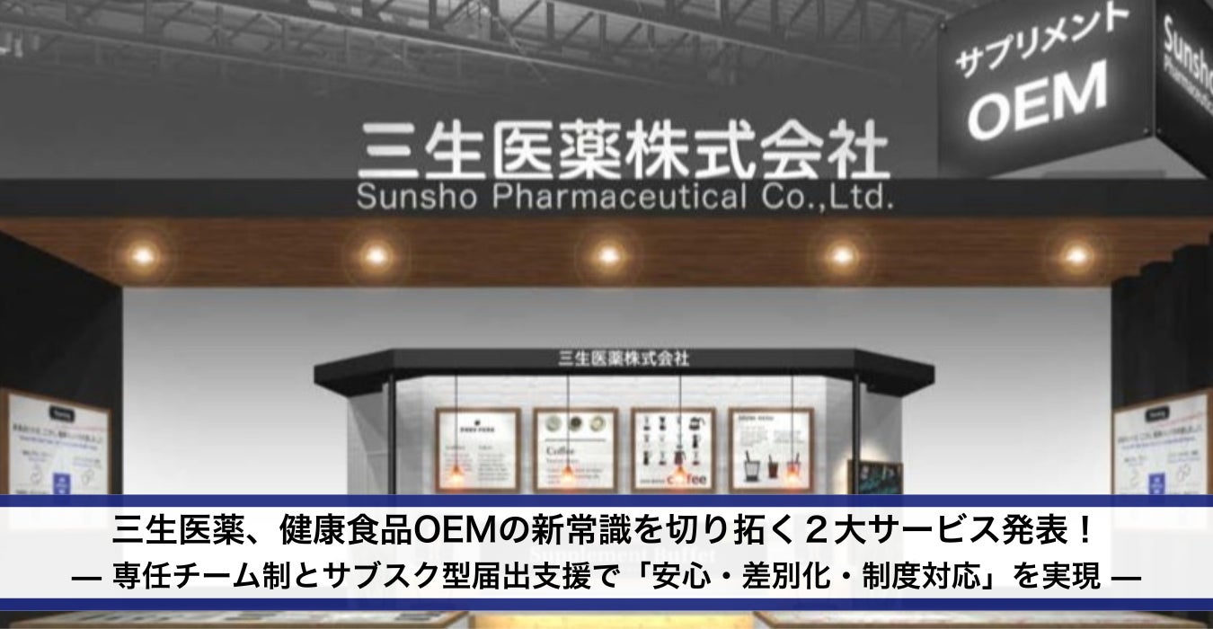 ● 健康食品・サプリメントの受託開発製造におけるリーディングカンパニー、三生医薬株式会社(本社:静岡県富士市、代表取締役社長:今村 朗)は、商品開発プロセスで多くの販売会社が直面する三大課題――「スピード」「差別化」「制度対応」――を根本から解決する2つの新サービスを本格始動します。