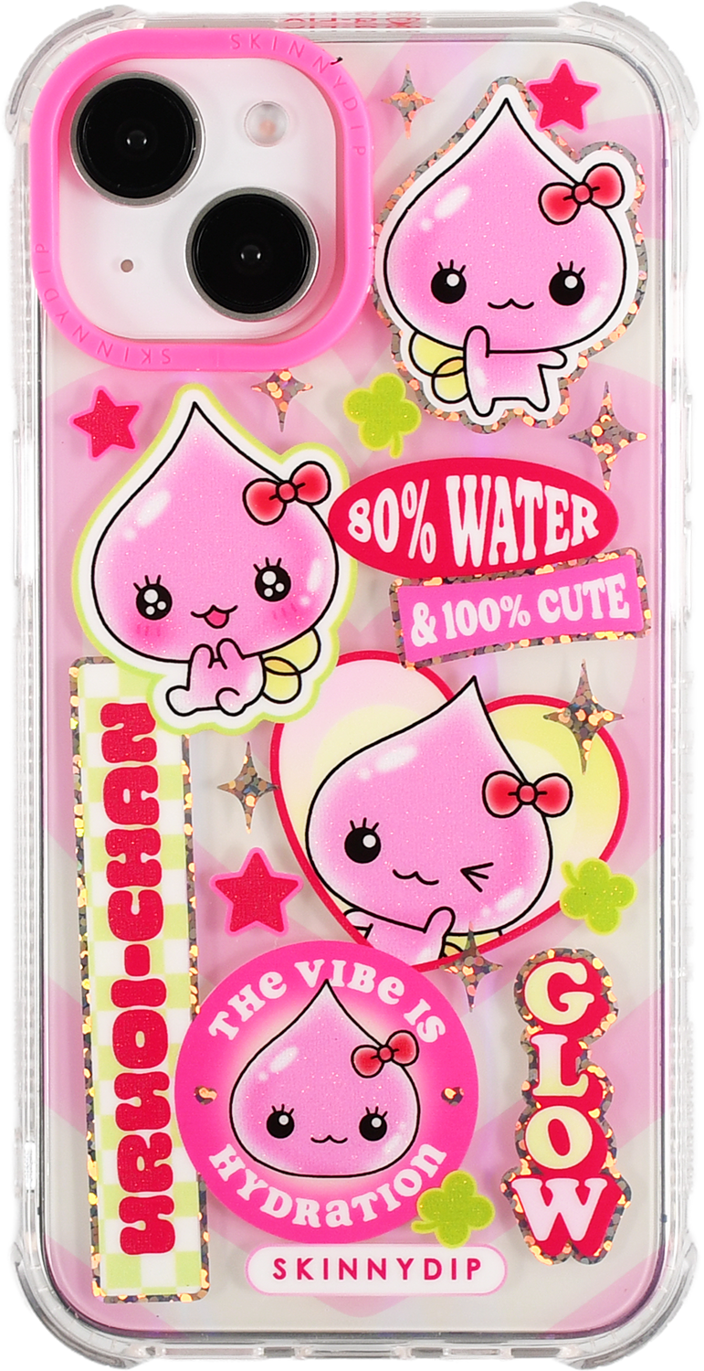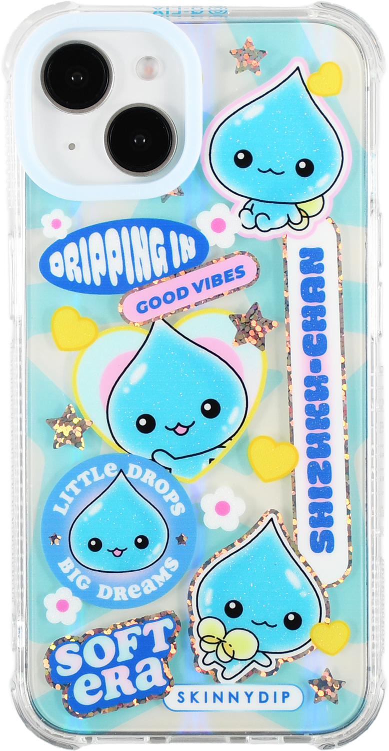 キラキラなグリッターとギラギラな大きめなホログラムで、しずくちゃん達のシールを貼り付けたようなポップで遊び心あふれるフォンケースをはじめ、SKINNYDIPらしさ全開のアイテムラインナップです。