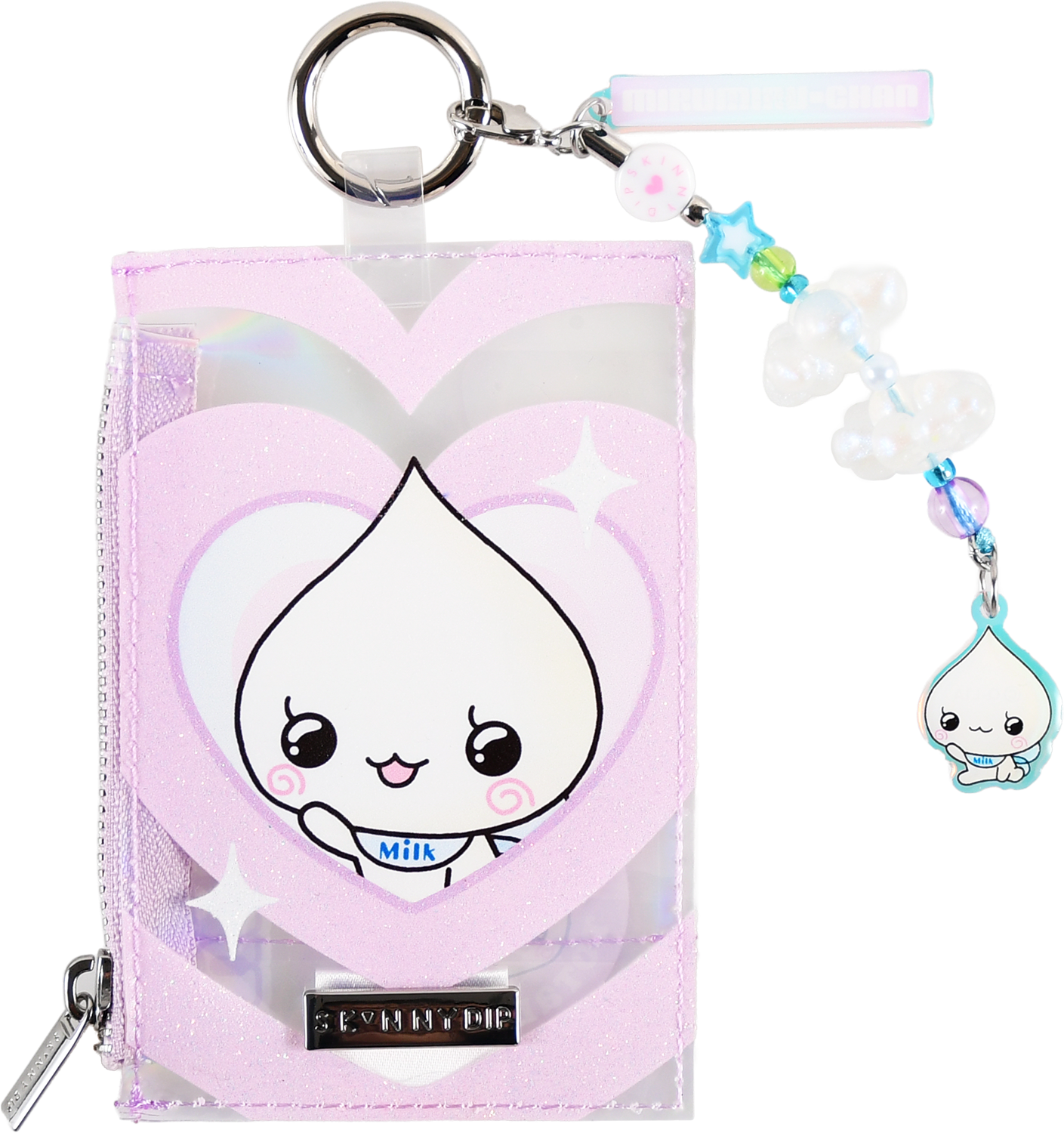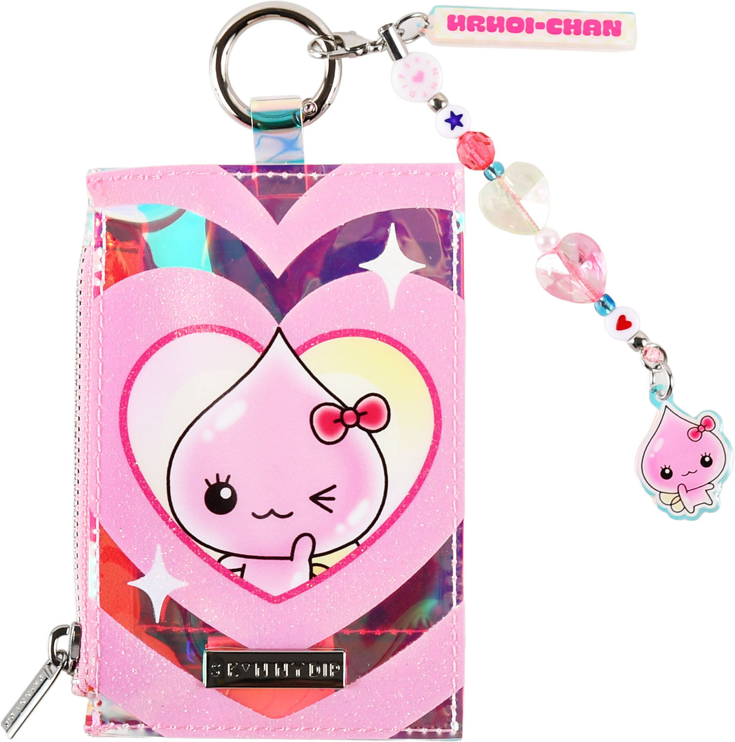 IDカードや交通カード入れとしても使えるカラビナ付きケース。ステッカーチックにグリッターを加えてキラキラにデザインしているため、バッグチャームとしても可愛くお使いいただけます。