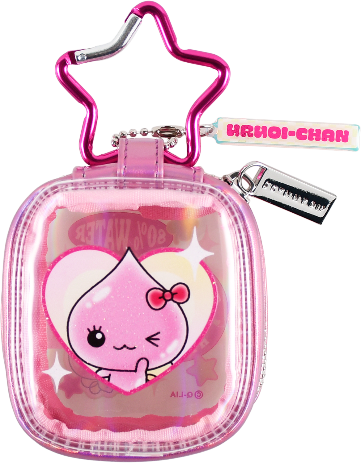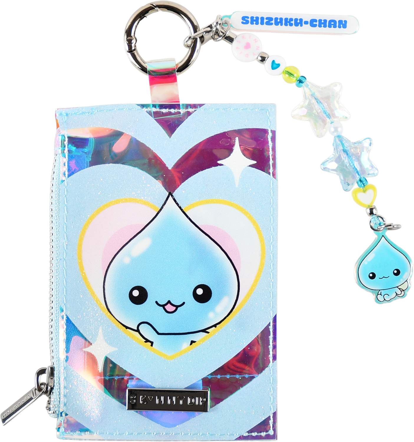 しずくちゃん達をグリッター加工でデザインしたポーチ。マチもしっかりとあるため、モバイルアクセサリーやコスメ等しっかり収納できる持ち歩きやすいサイズ感のポーチ。(サイズ目安:約 H8.5×W11×D7cm)