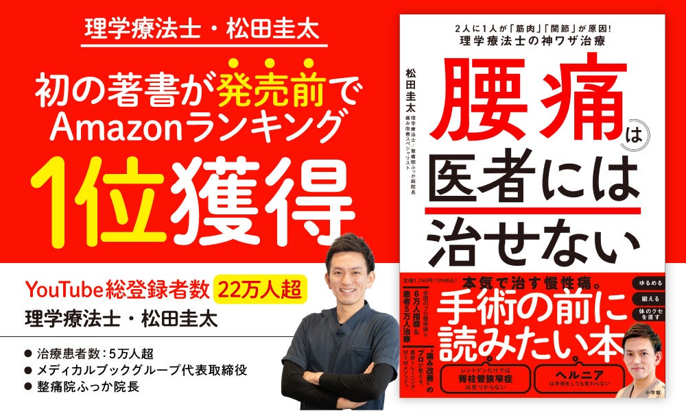 【腰痛を根本から治す】YouTubeで話題の理学療法士・松田圭太、初の著書が発売前にAmazonランキング1位を獲得