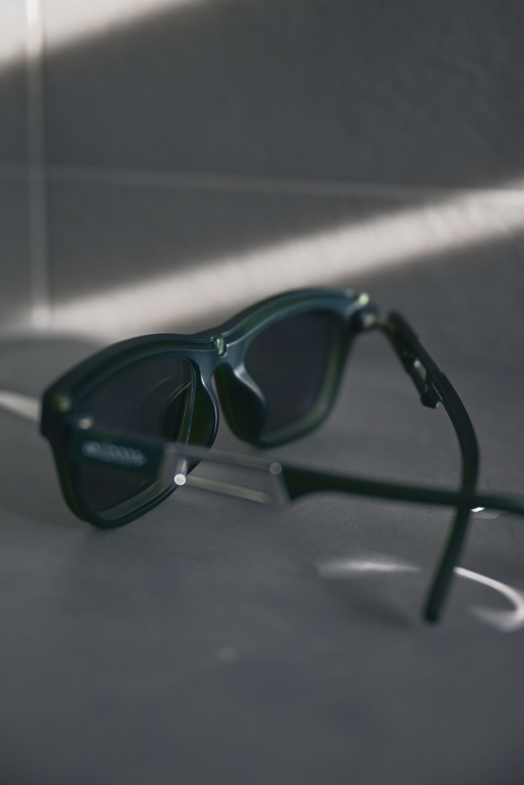 コレクションの中には、折りたためるモデルや、普段使いのメガネの上から装着できるオーバーグラス、クリップオンタイプも揃っています。