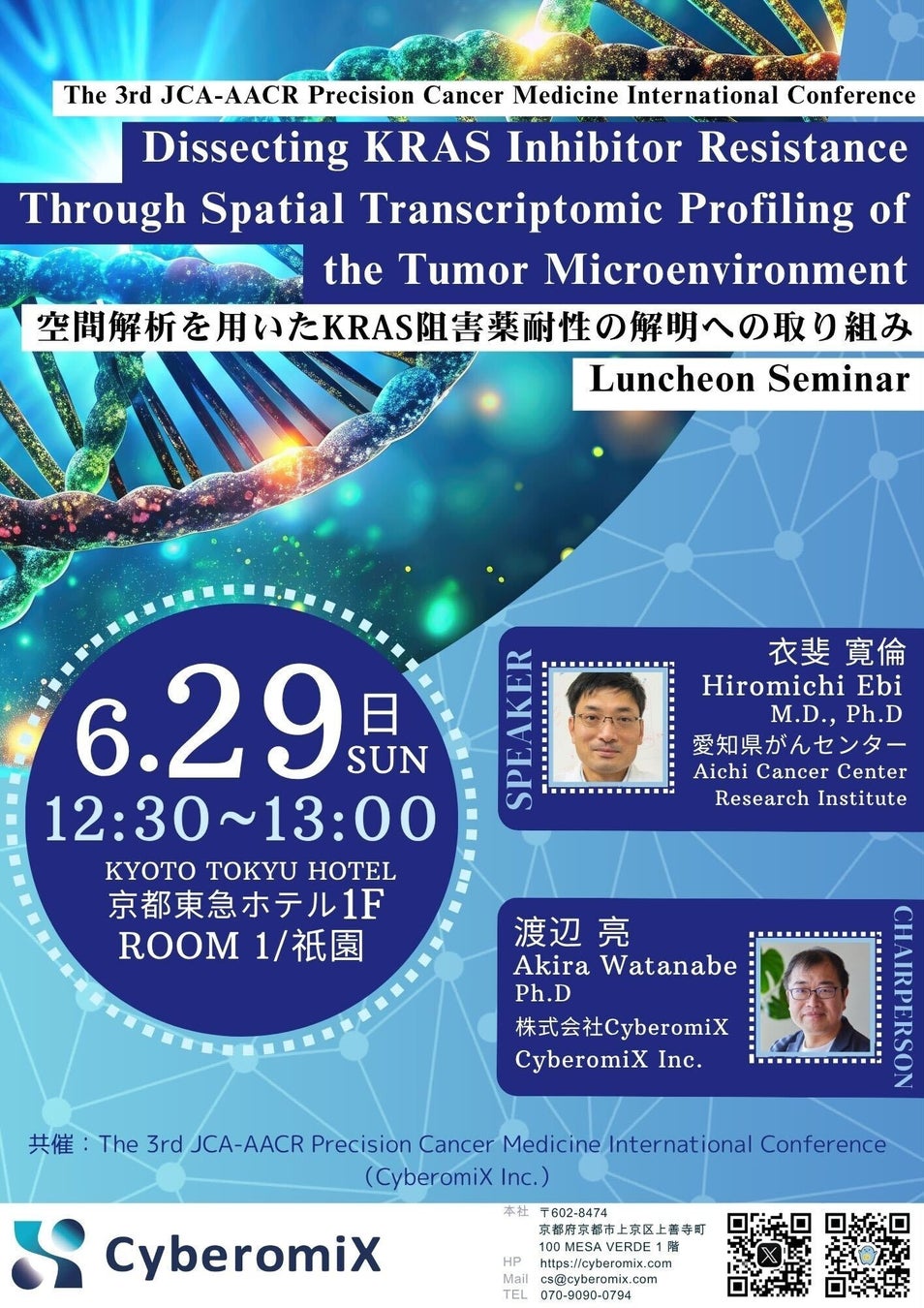 2025年6月29日(日)、東急ホテルで開催される【The 3rd JCA-AACR 】ランチョンセミナーに登壇いたします。セッションタイトルは〜空間解析を用いたKRAS阻害薬耐性の解明への取り組み〜