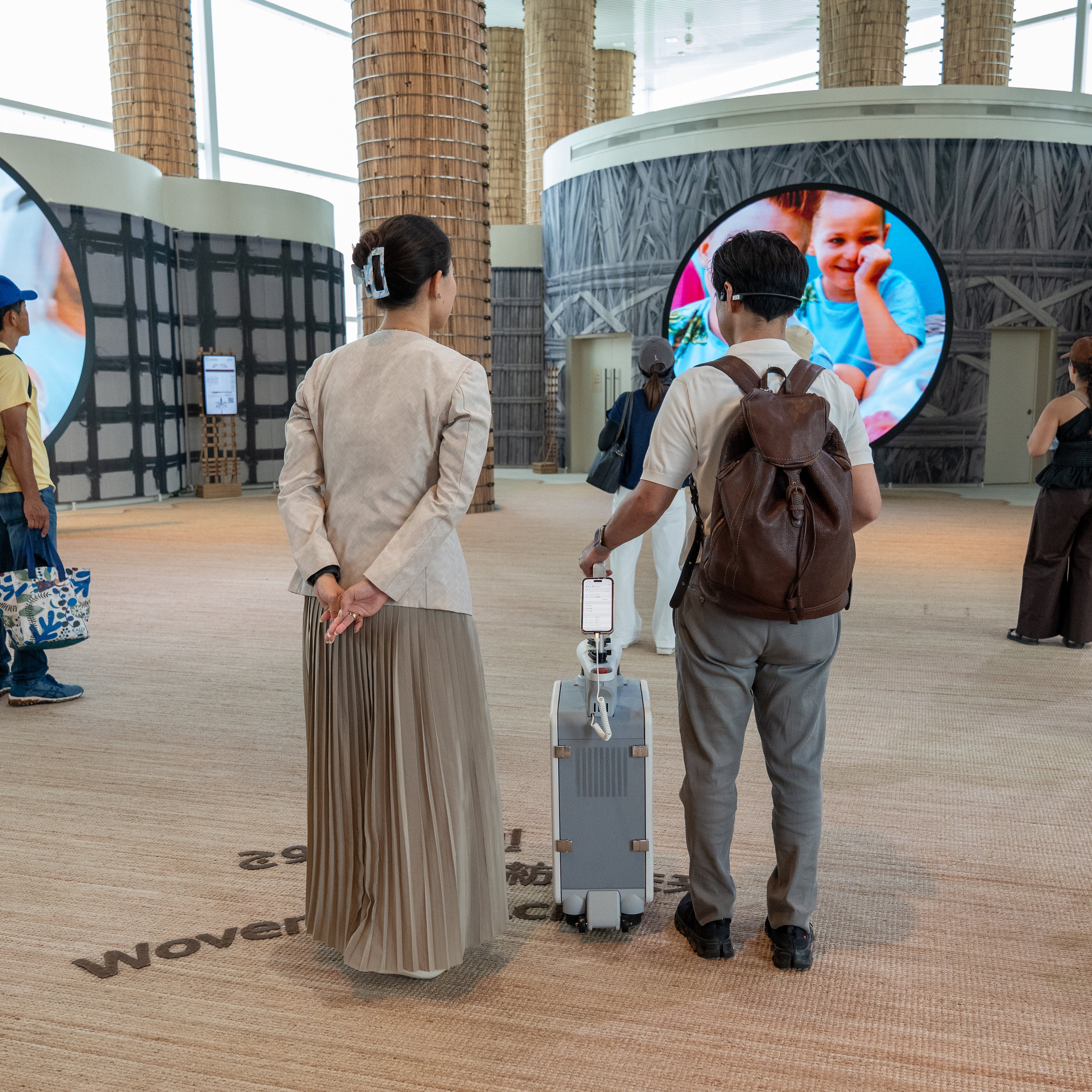2025年大阪・関西万博において、アラブ首長国連邦館(以下、UAEパビリオン)は、視覚に障がいのある来場者が自律型ナビゲーションロボット「AIスーツケース」を使用して展示を体験するという、誰もが参加できる未来志向の取り組みを受け入れました。AIスーツケースを利用した来場者を受け入れたのは本パビリオンが初めてであり、アクセシビリティ推進の観点からも、本万博における重要な一歩となりました。