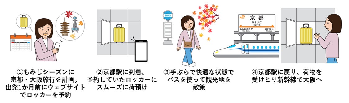 東海旅客鉄道株式会社(以下「JR東海」という)及び株式会社JR東日本スマートロジスティクスは、公民連携プラットフォーム「KYOTO CITY OPEN LABO」を活用し、手ぶら観光の推進に向けた取組の一環として、観光客の利便性・快適性の向上や市バス等の公共交通機関の混雑緩和を目的に、京都駅で「初」となる多機能ロッカーを設置します。