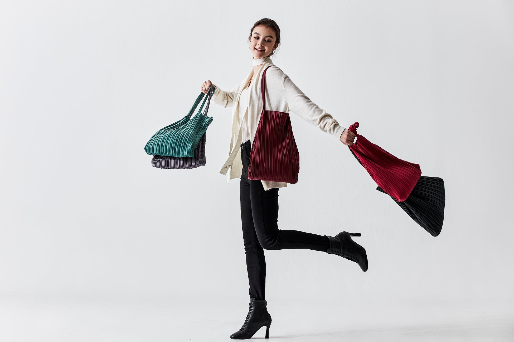 プリーツを活かした洗練されたミニマルデザインのトート、ミニショルダー、巾着、バックパックなどのタイプに、サイズのバリエーションやカラー展開を取り揃え、デイリーユースから冠婚葬祭などさまざまなシーンに対応する商品ラインアップで、お客様の多様なライフスタイルに寄り添います。