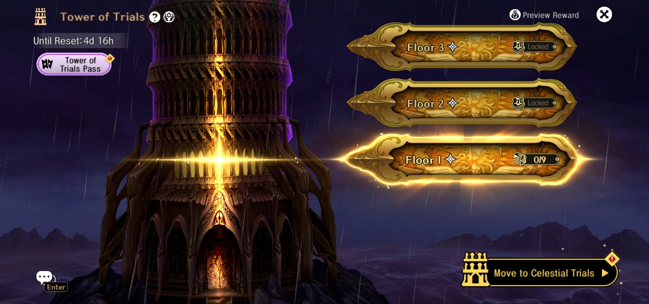 各階では「女神の采配」により特別なバフが付与され、部屋に入る際に「挑戦の祈願」から1つを選択して、能力を強化した状態で挑戦することができます。また、「試練の塔」では、すべてのヴェーダの騎士が持つ「★6スキル」が適用されるようになり、ヴェーダの騎士の組み合わせでより戦略的に攻略することができます。