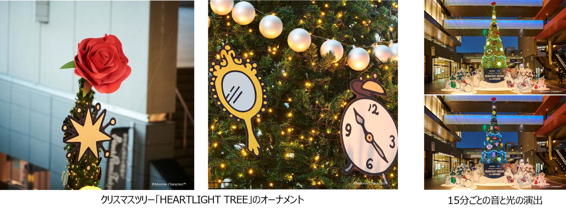 「ムーミン」の物語に着想を得た約40種類のオーナメントと音と光の特別演出が彩るクリスマスツリー「HEARTLIGHT TREE」