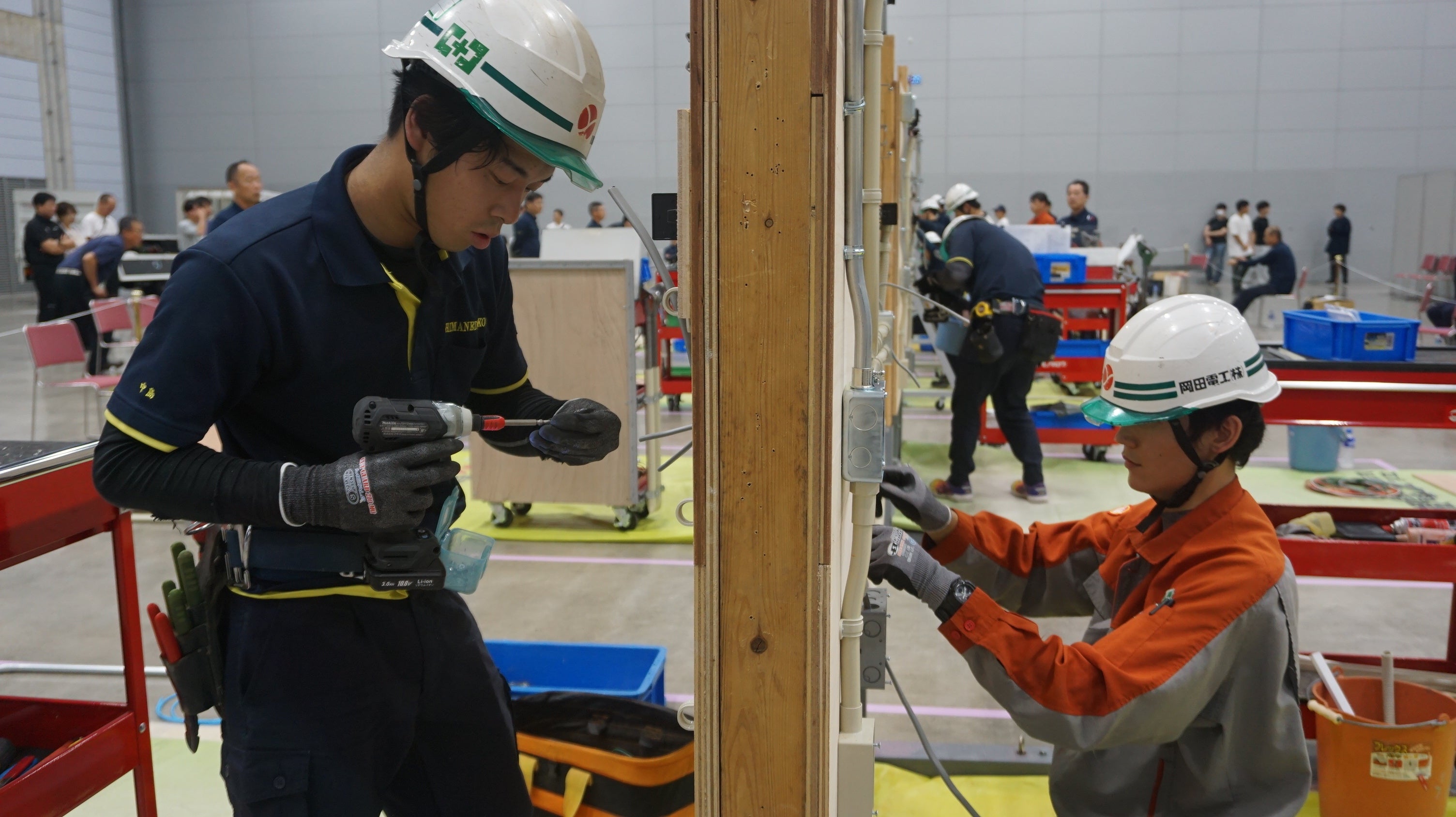 電気工事部門は1965年(昭和40年)、管工事部門は1991年(平成3年)の開始以来、毎年欠かすことなく開催されてきたこのコンクールは、単なる競技会ではなく、当社の技術者としての誇りとプロ意識を育む場です。各事業所から選抜された代表選手たちが、日頃の研鑽の成果を正確性とスピードで競い合いました。