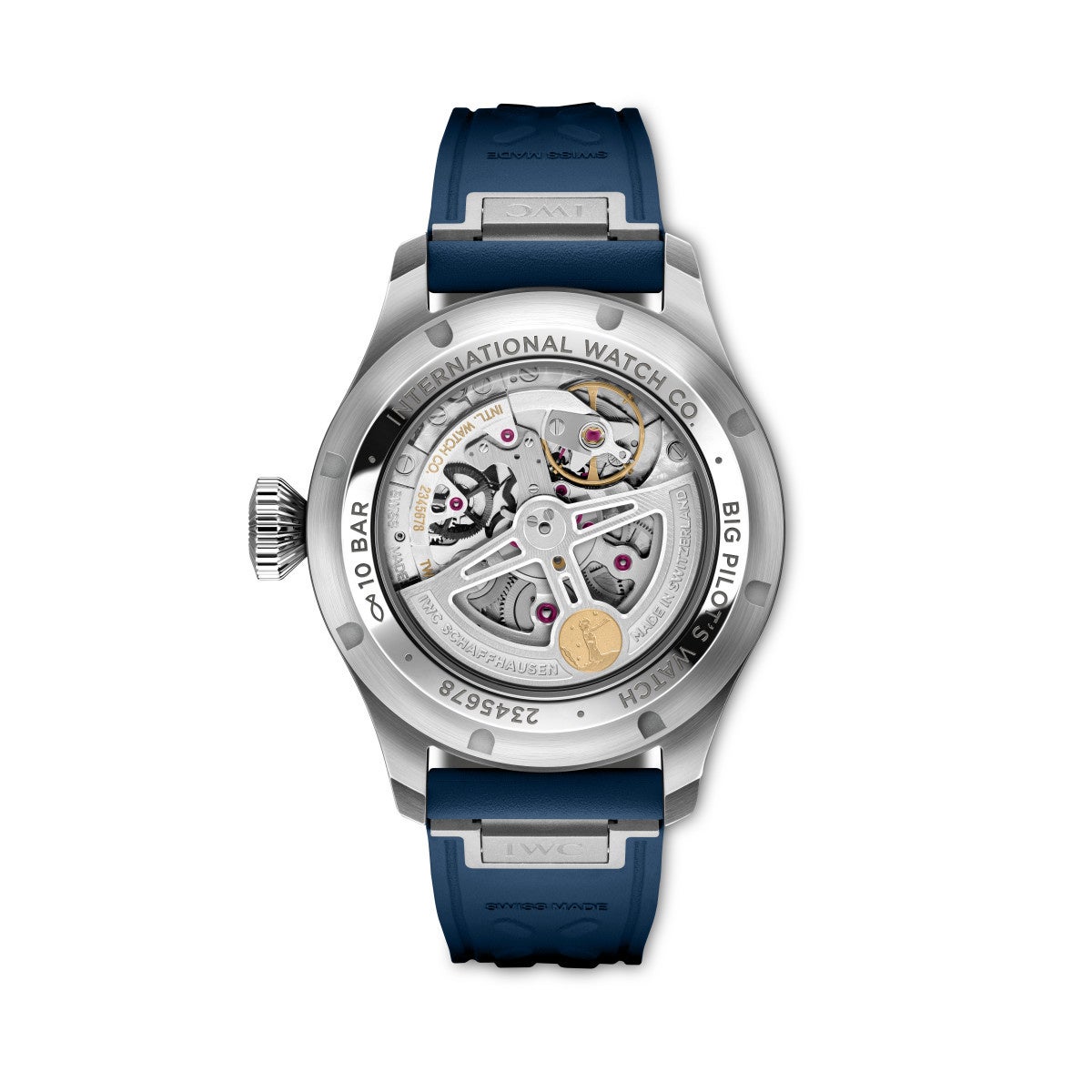 . 「ビッグ・パイロット・ウォッチ・パーペチュアル・カレン ダー・プロセット “プティ・プランス”」(Ref. IW329601) は、直径42 mmのステンレススティール製ケースと、 EasX-CHANGEシステムを装備した5列ステンレスス ティール製ブレスレットを備えています。ディープブルーの文字盤のインデックスと数字はロジウムメッキのアプ ライドで、針にもロジウムメッキが施され、アプライド・ インデックスと針はどちらにもスーパールミノバがコー ティングされています。この時計には交換用のブルーの ラバー・ストラップが付属します。内蔵された EasX-CHANGEシステムにより、工具を必要とせず、すば やく簡単にメタル・ブレスレットをラバー・ストラップに交 換することができます。 両モデルとも、ステンレススティール製リューズと、「Edition Le Petit Prince」の刻印が施されたステンレススティール製 裏蓋リングを備えています。アントワーヌ・ド・サン=テグ ジュペリの最も有名な小説にちなんで、自動巻き機構の ローターには、小惑星の上に立つ「星の王子さま」を描い たゴールドメッキのメダルがあしらわれています。