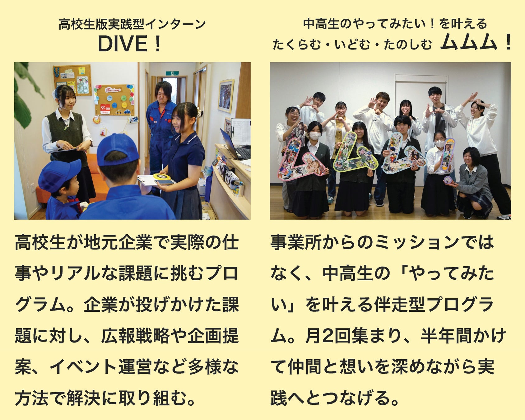 私たちは、高校生が地元の魅力的な大人と出会い、「やってみたい」を見つけ実現するための支援をこれまで行なってきました。